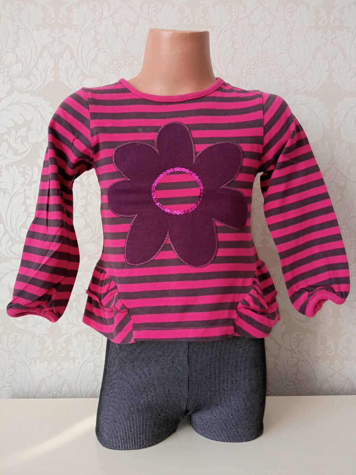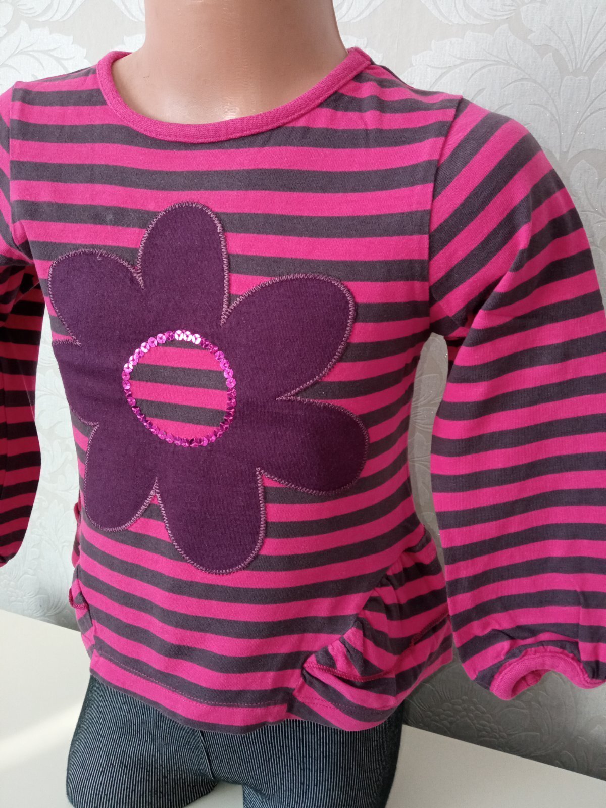 Dievčenské pruhované tričko s kvetom 3-4 r.