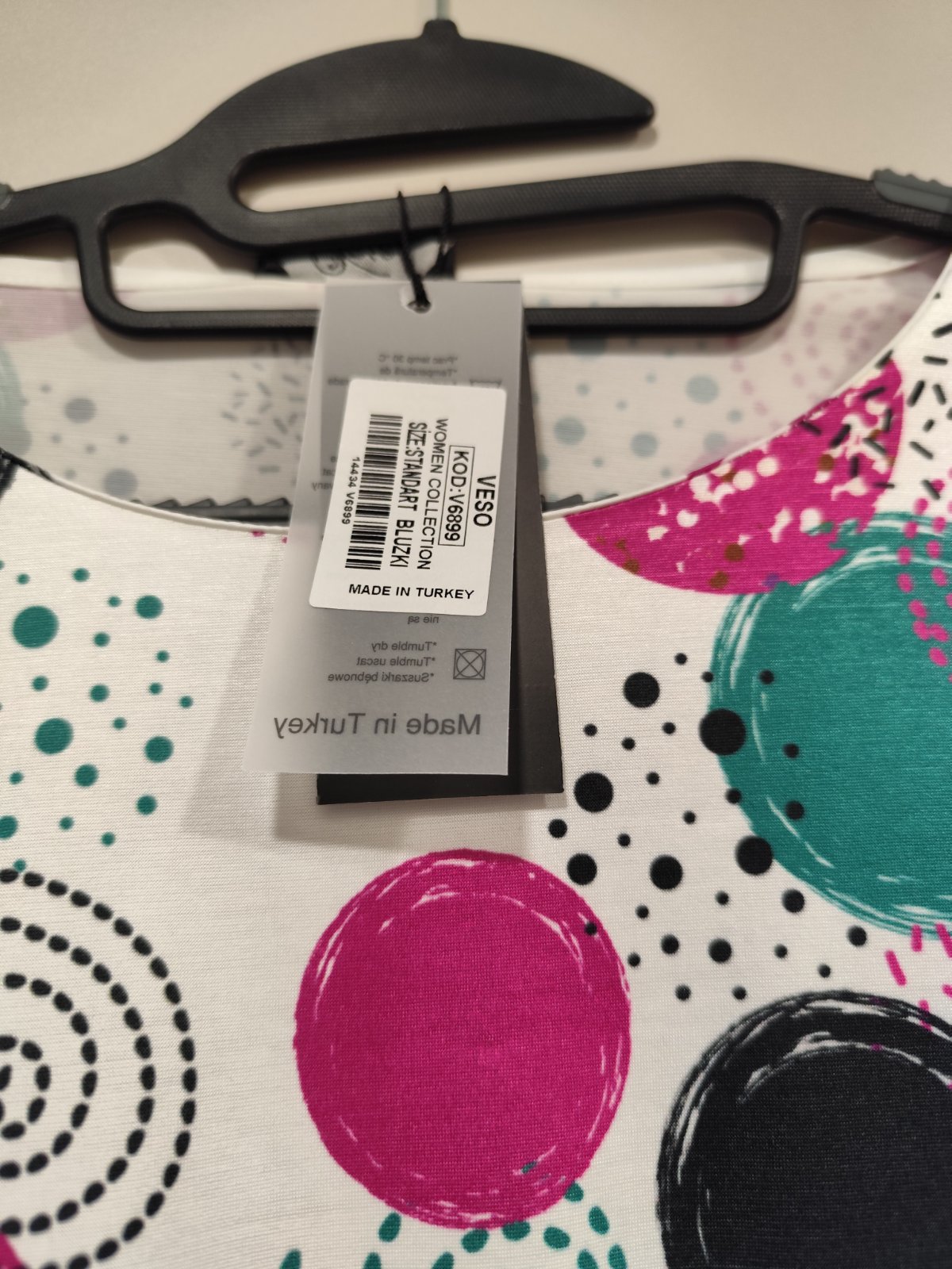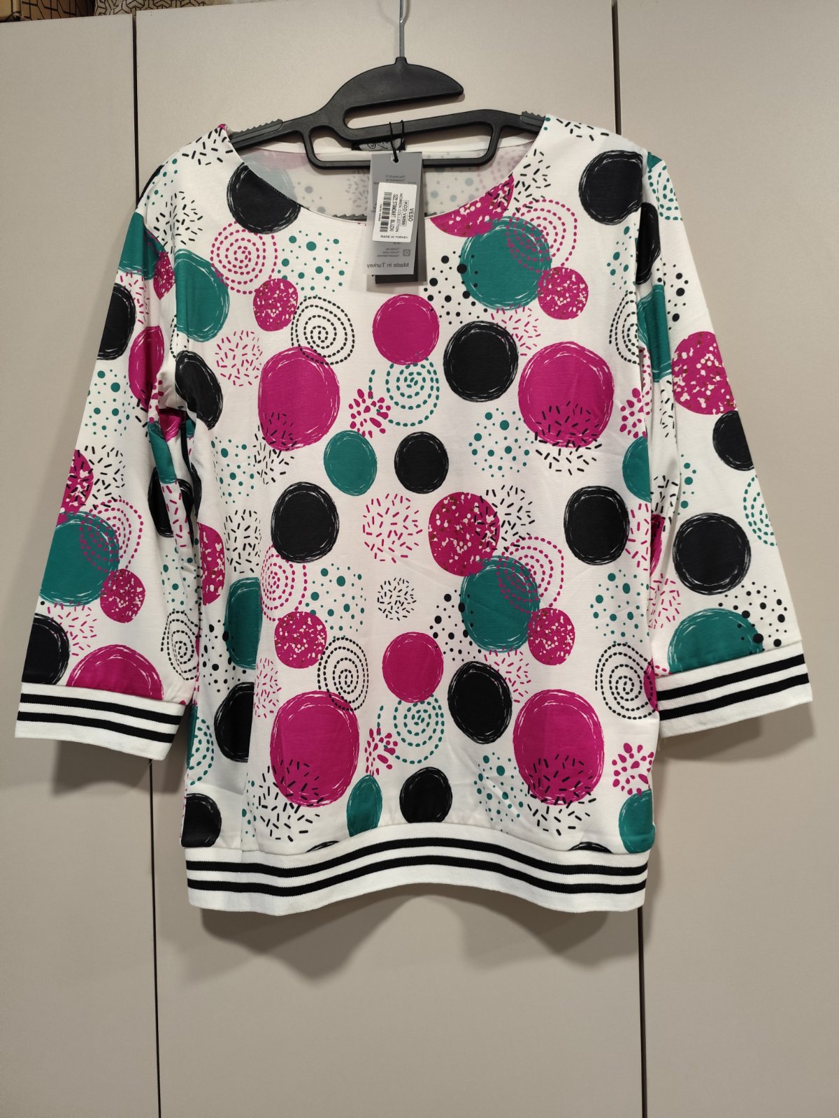 Veľmi pekné tričko, nenosené s visačkou. Žiaľ mne malé. Veľkosť odporúčam 38-40-42 Max. Kupované v online butiku. Turecká bavlna.