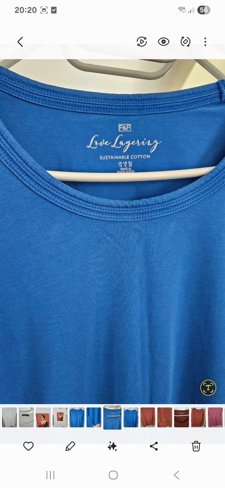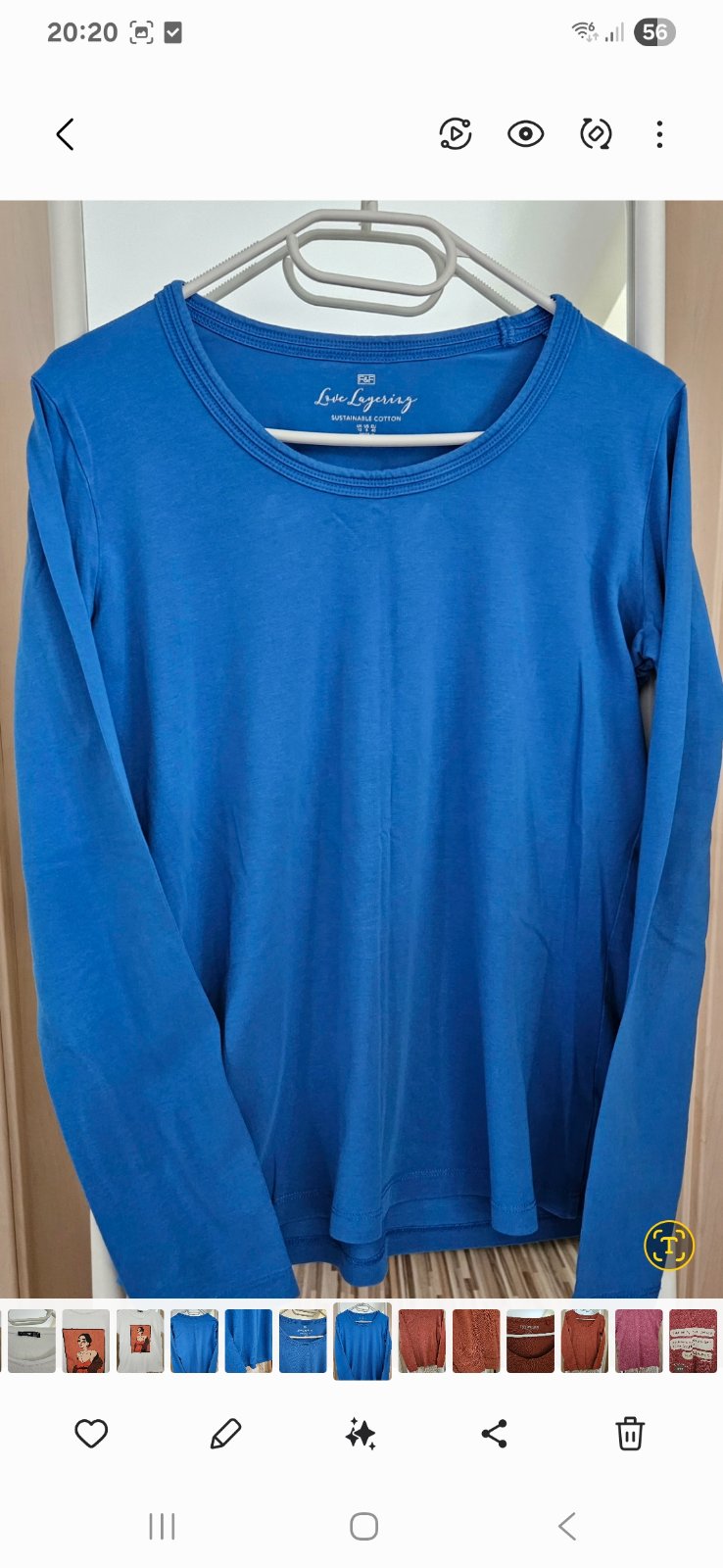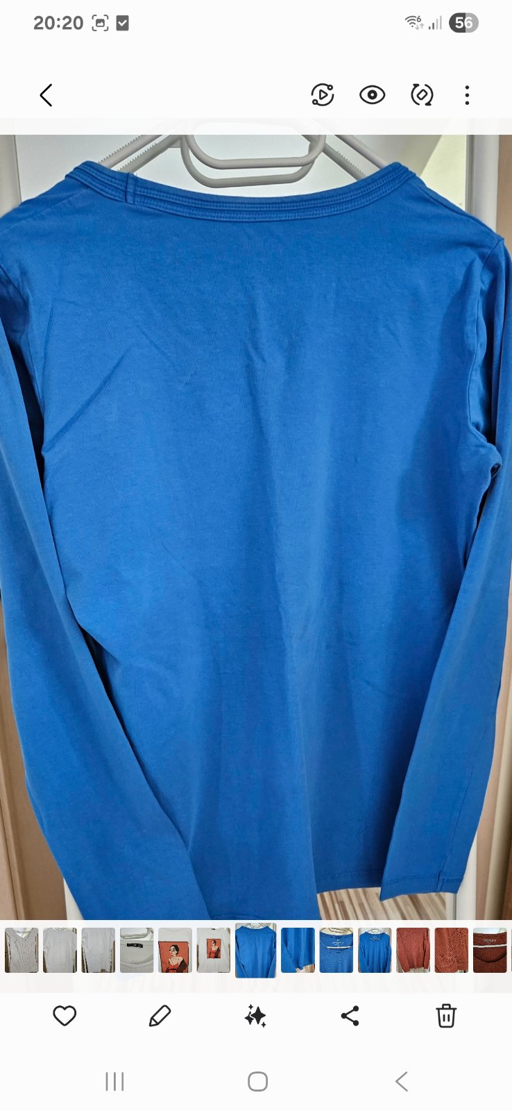 Modré tričko s dlhým rukávom, veľkosť č. 40.