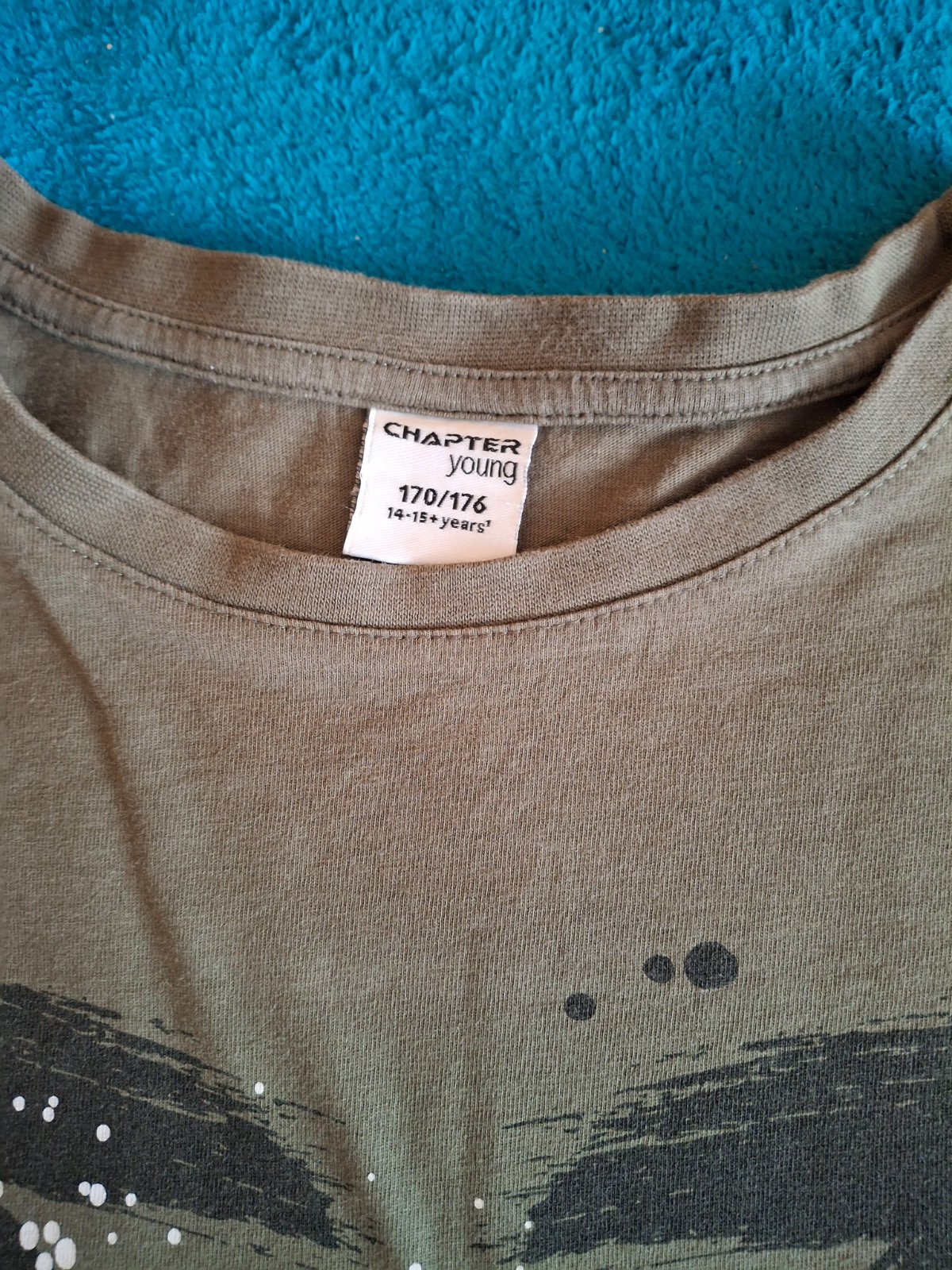 Dvojvelkosť 170/176 kupované v Takko. Aplikácia bezchybná. Rozmery š 50cm, dĺžka 70cm, rameno 14cm, rukáv 60/49cm.
