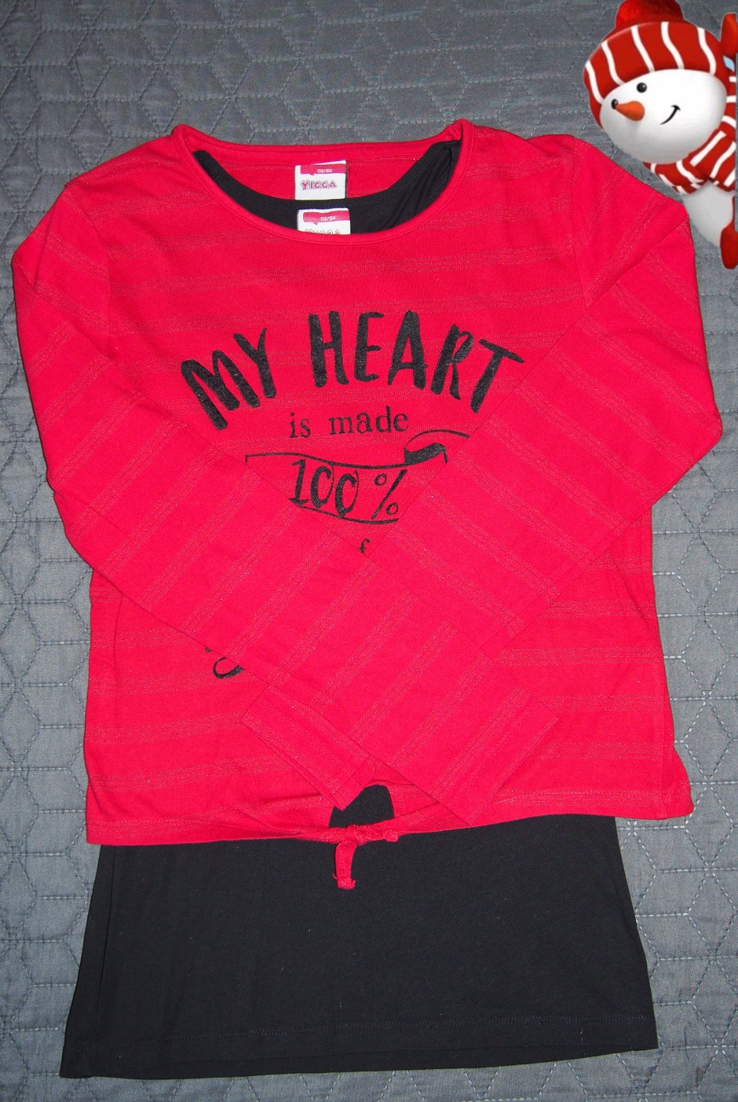 Dobrý stav (žmolky sa nájdu)! Dievčenské tričko s dlhým rukávom a vzorom a filtrami. Guma na spodku. Elastické. Materiál 57%bavlna,43%polyester. ROZMERY: dĺžka (meraná vzadu):60cm, dĺžka rukáv od ...