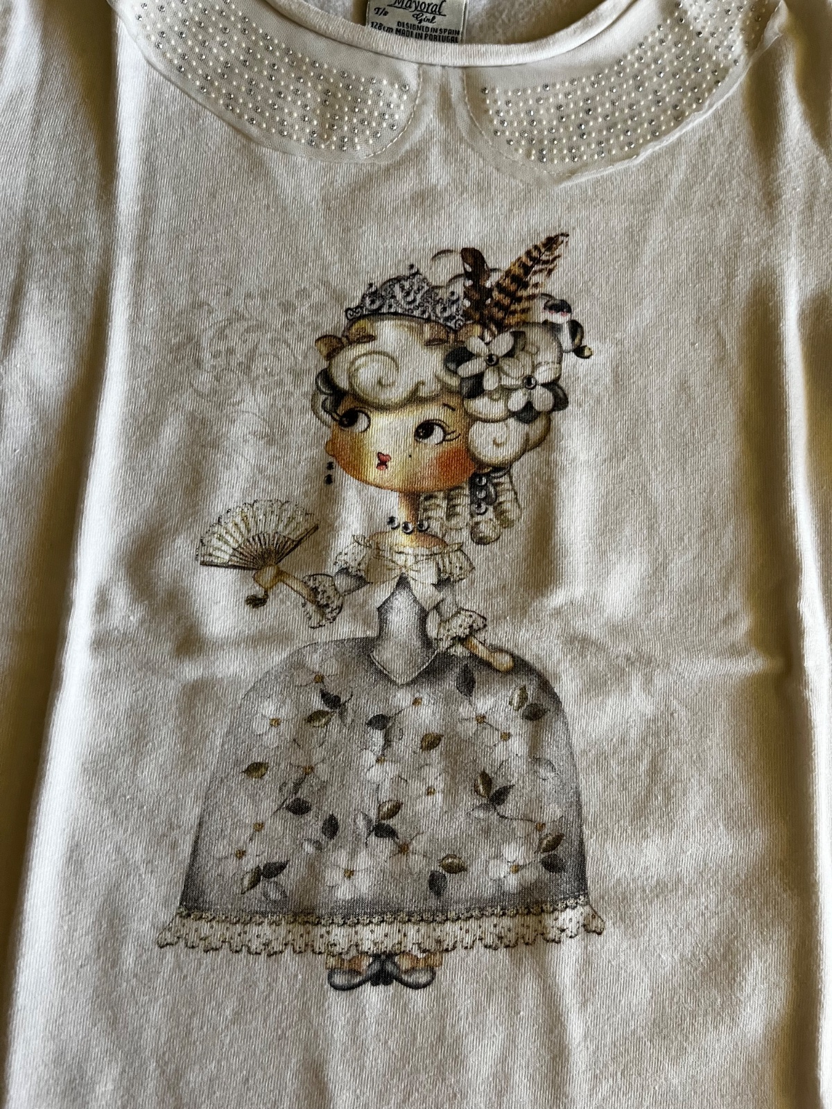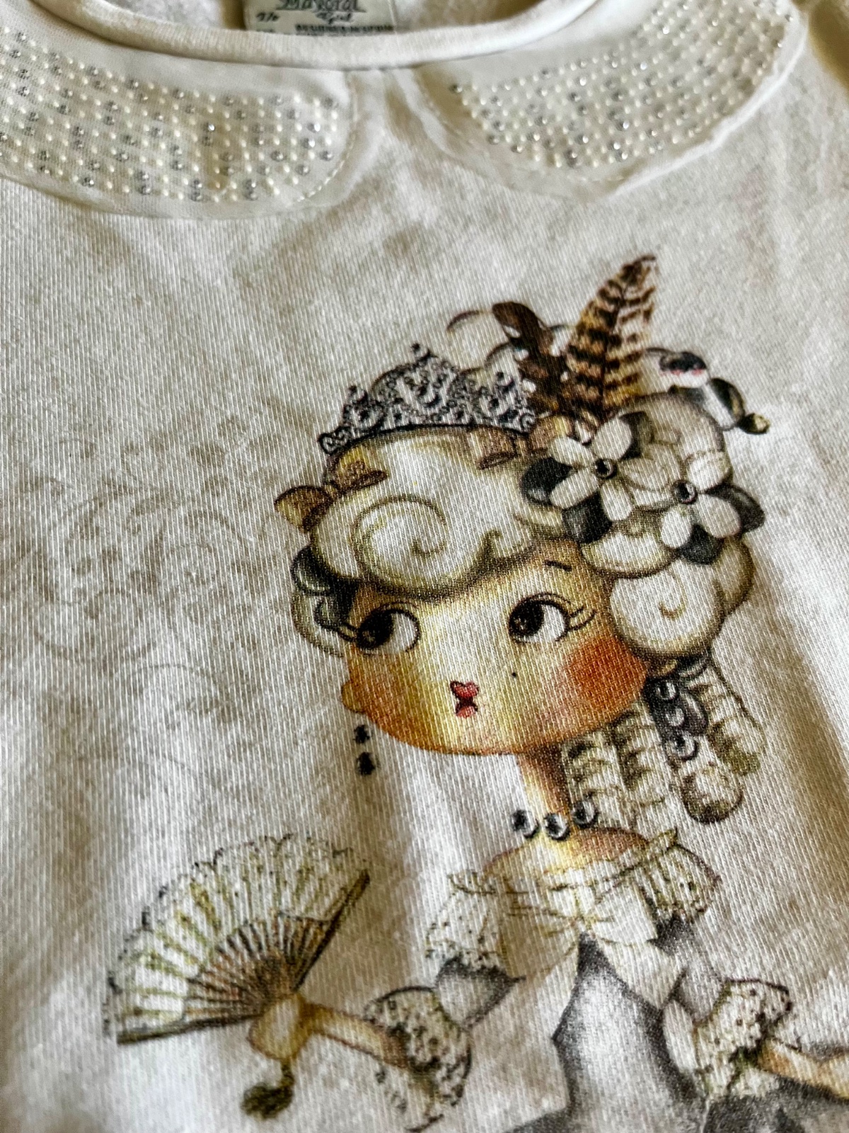 Vpredu je obrázok dievčatka - malej barónky, okolo krku je ozdobný šifónový golierik vykladaný kamienkami.