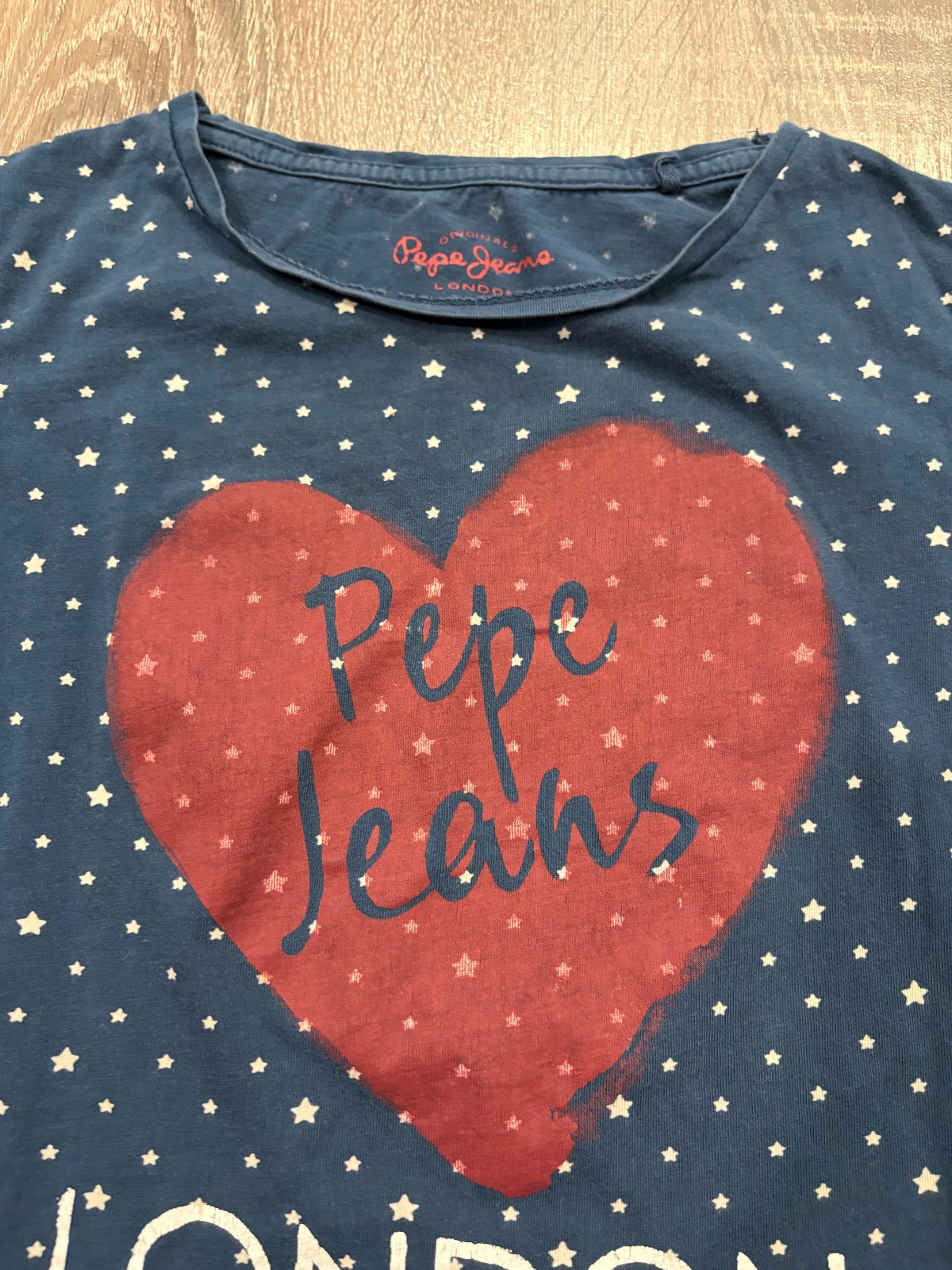 05.Pepe Jeans dievcenske tričko velkost 140,dlzka je 48cm,dlzka rukava od krku je 53cm a sirka v podpazusi je od 40x2cm do 46x2cm