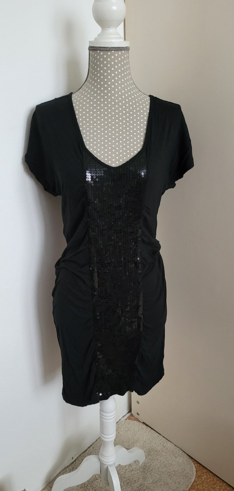 Čierná tričkovina s flitrami. Nosené bez žmolkov.