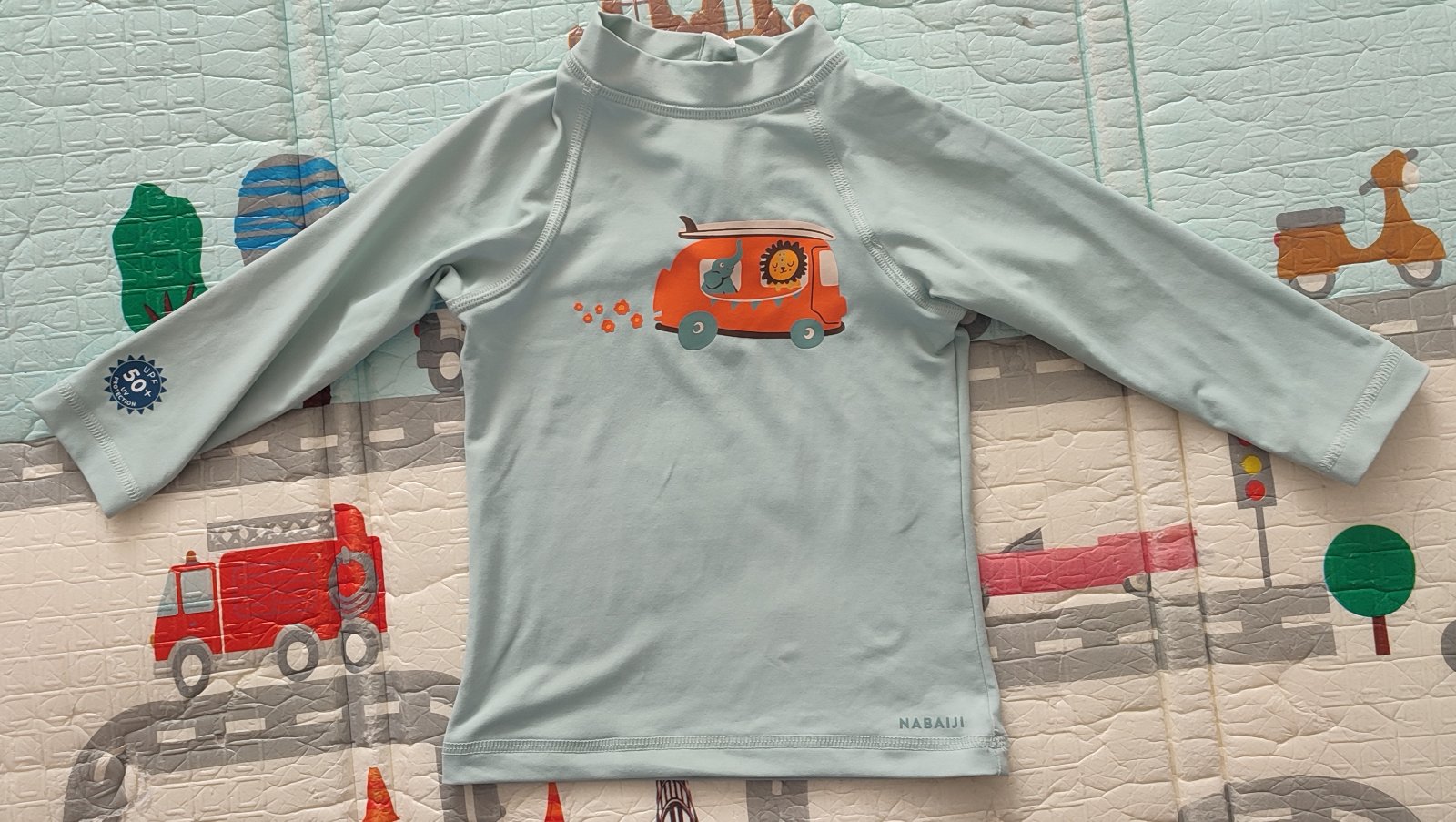 Ponúkam párkrát oblečené tričko na kúpanie s UV ochranou, je najmenšej veľkosti (podľa Decathlonu 2-3 roky), syn ho mal na sebe ako jedenapolročný. Rozmery sú nafotené. Kupované v obchode Decathlon.