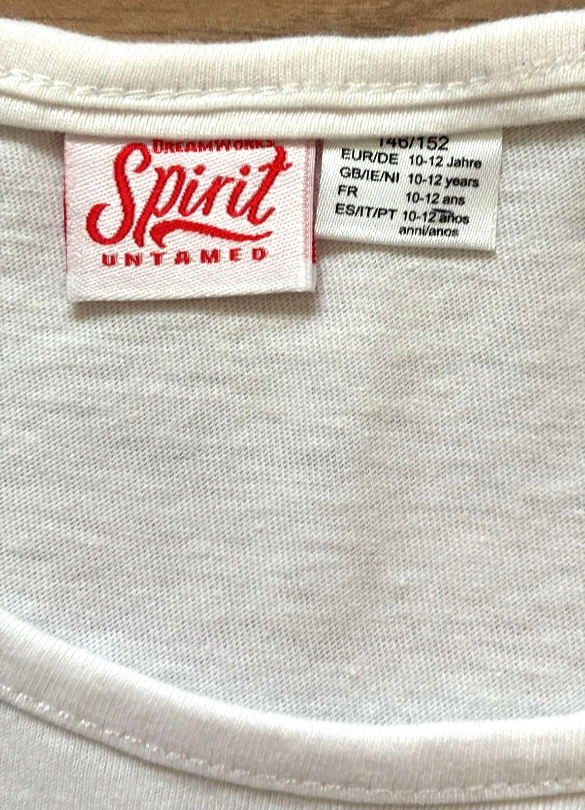 Predám pekné biele -na foto zle vidno- tričko s krátkym rukávom z rozprávky Spirit - Slobodný žrebec, má výraznú farebnú potlač koňa Spirita a Lucky, materiál bavlna, d=54cm, š=41cm, r=11cm, stav veĺmi dobrý.