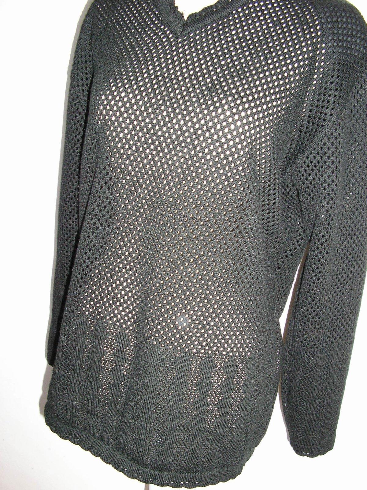 Exklusive mode čierne tričko elegantné, vzdušné zo 100 % acrylu. Rukávy dlhé, výstrih do „V“, rovný dolný okraj. Zachovalý kus. Príjemný na nosenie. Fotoaparát nekvalitný.
