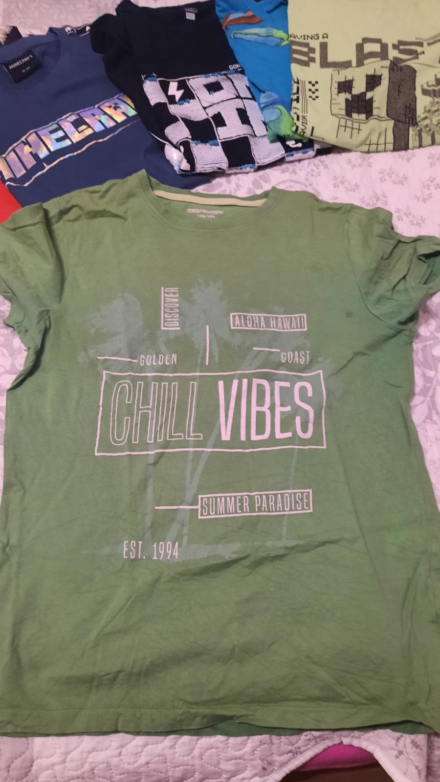 Tričká sú vo veľkosti 158/164 sú v super stave bez poškodenia.zelene pridávam grátis ma fliačky pri rukáve,vid foto.