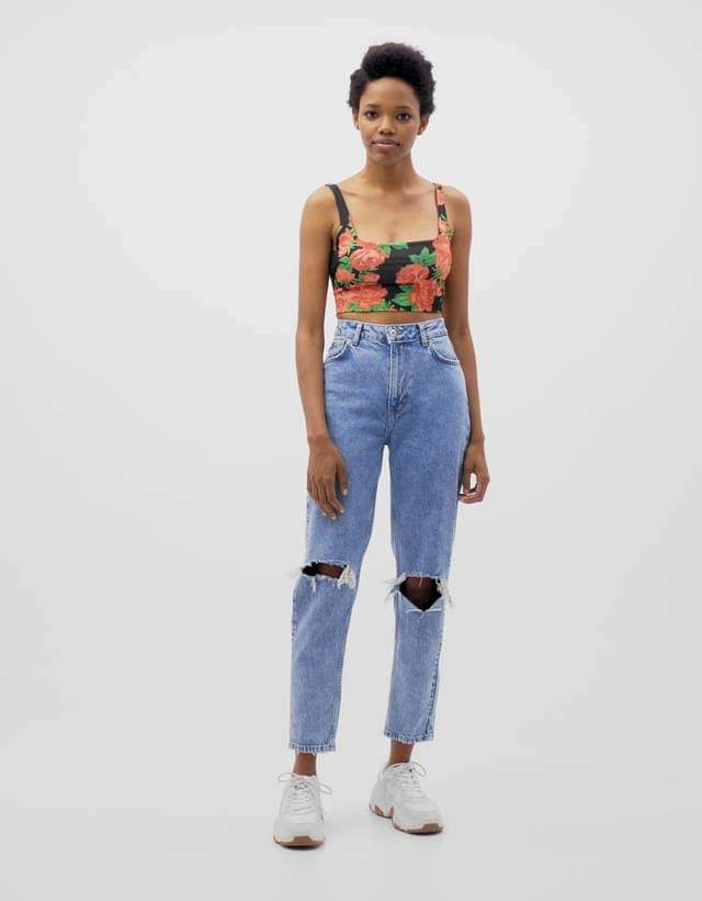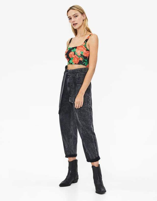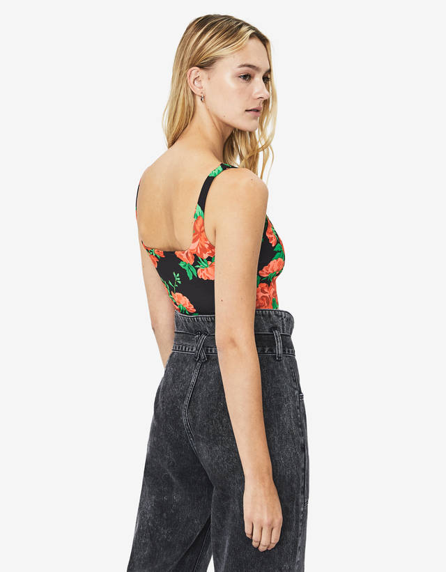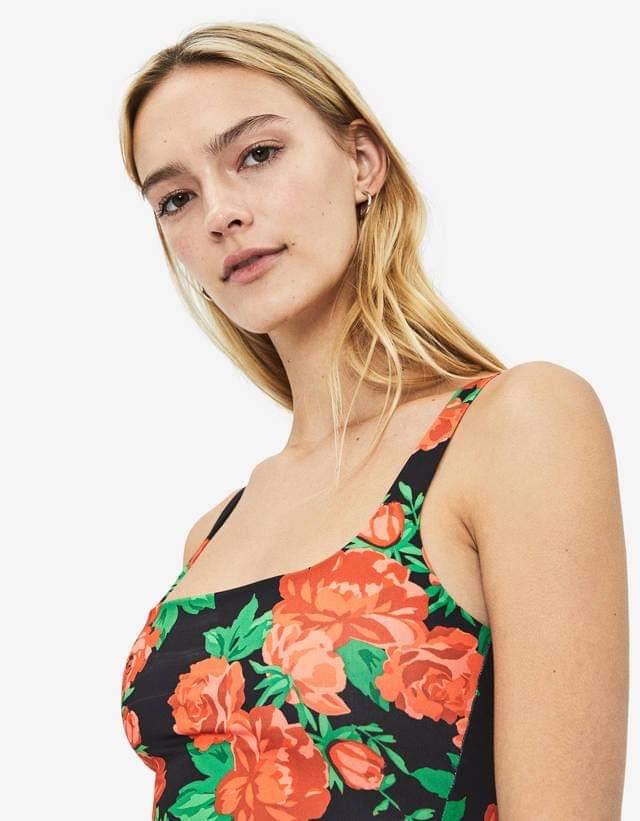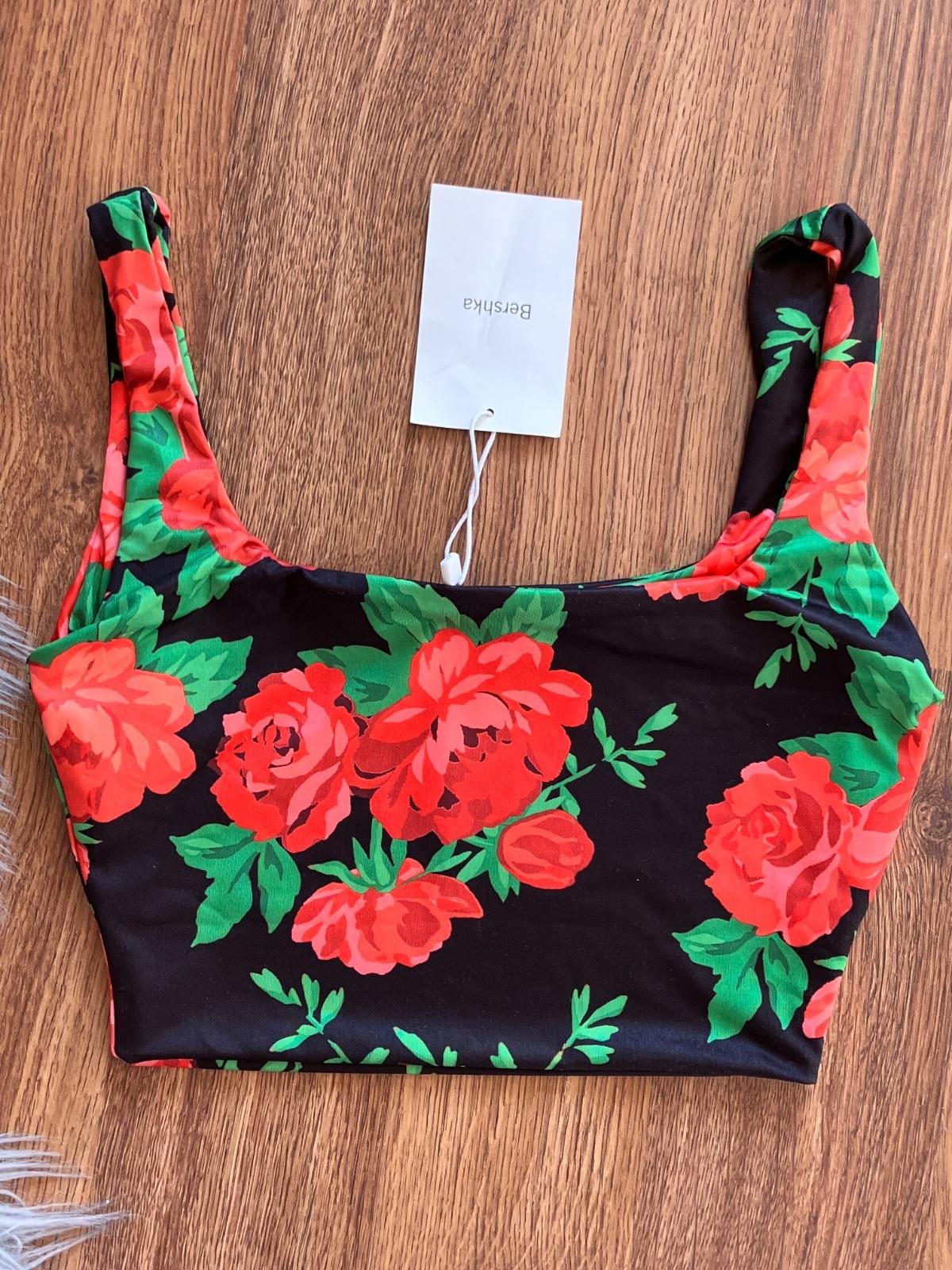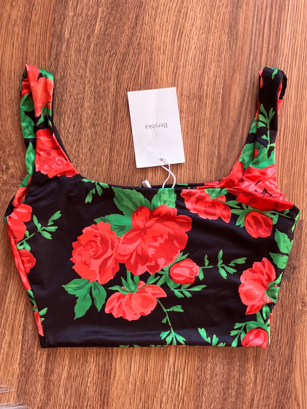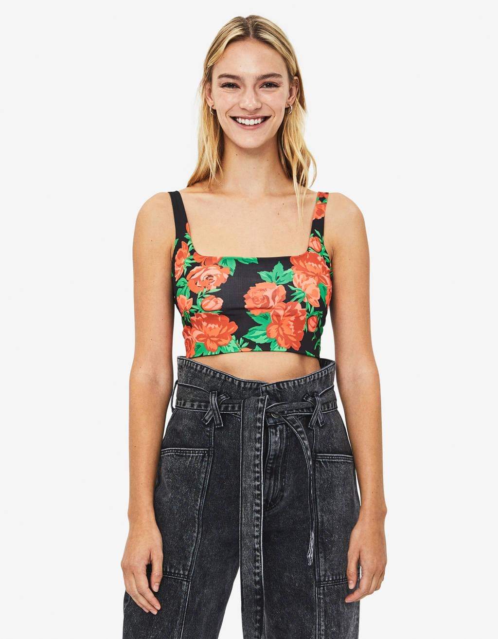 Dámsky , dievčenský croptop so širokým ramienkom, kvetovaný, jemne elastický, materiál 93%polyester,7%elastan.