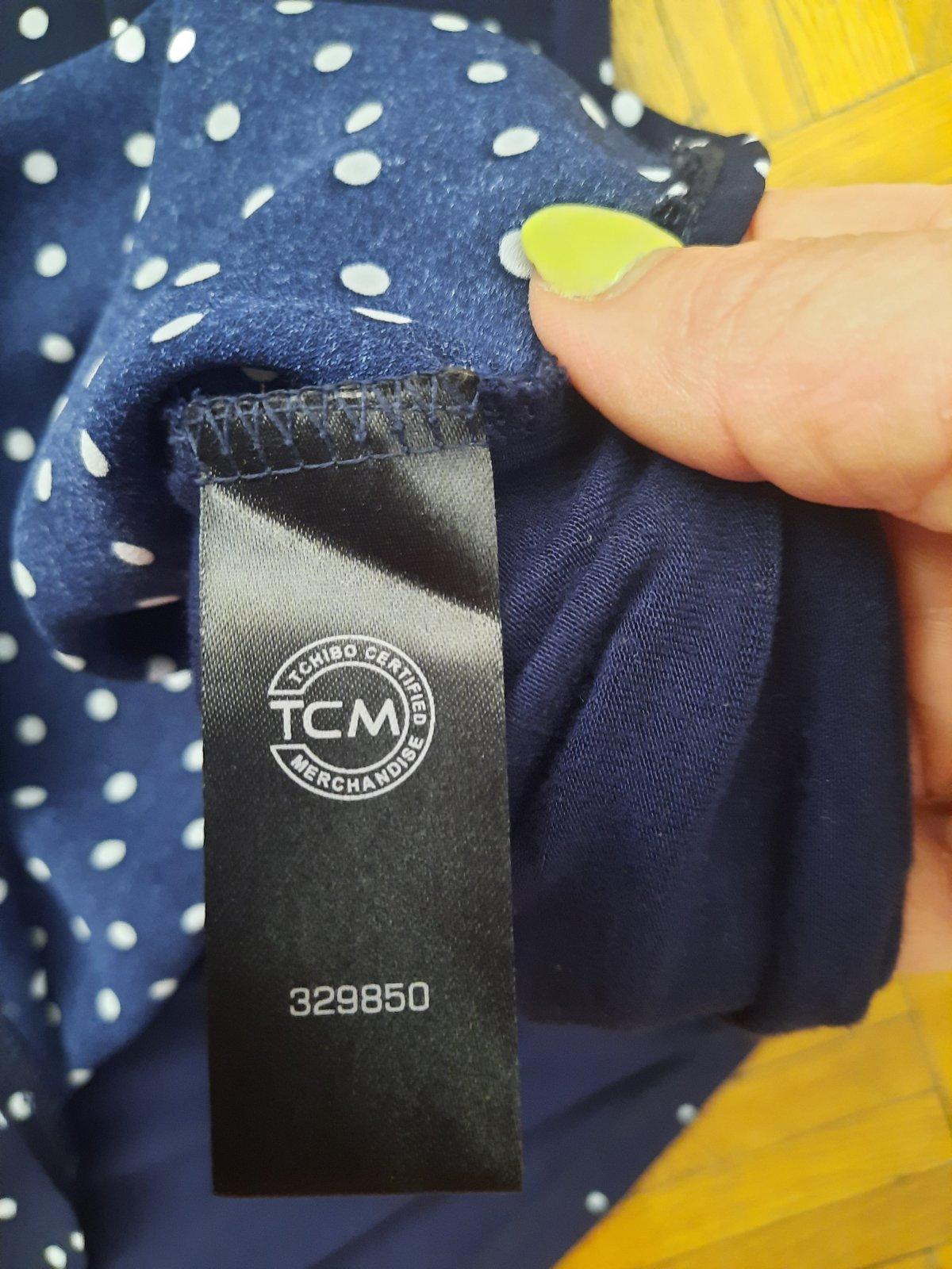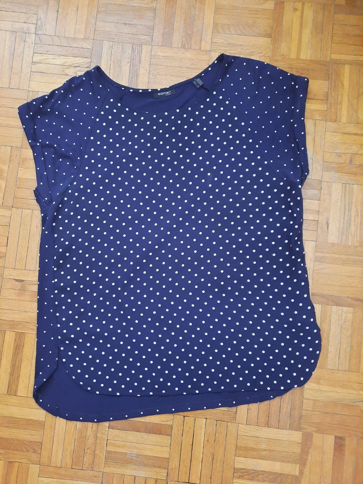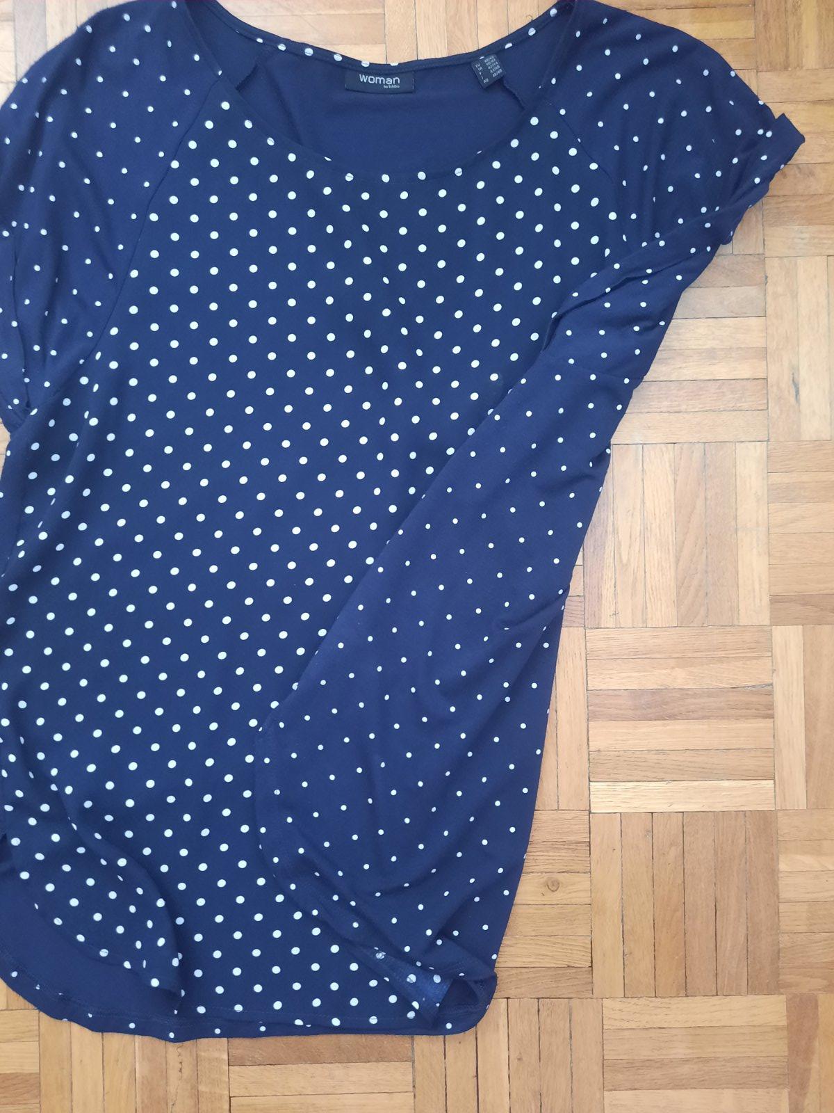 Dámska tunika-blúzka. Značka Tchibo. Veľkosť 42. Tmavomodrá. Dlhý rukáv s možnosťou zapnúť na 3/4. Rozmery: šírka v podpazuší 2 x 58 cm, dĺžka rukáva od ramena 61 cm, od podpazušia 45 cm, dĺžka vpr...