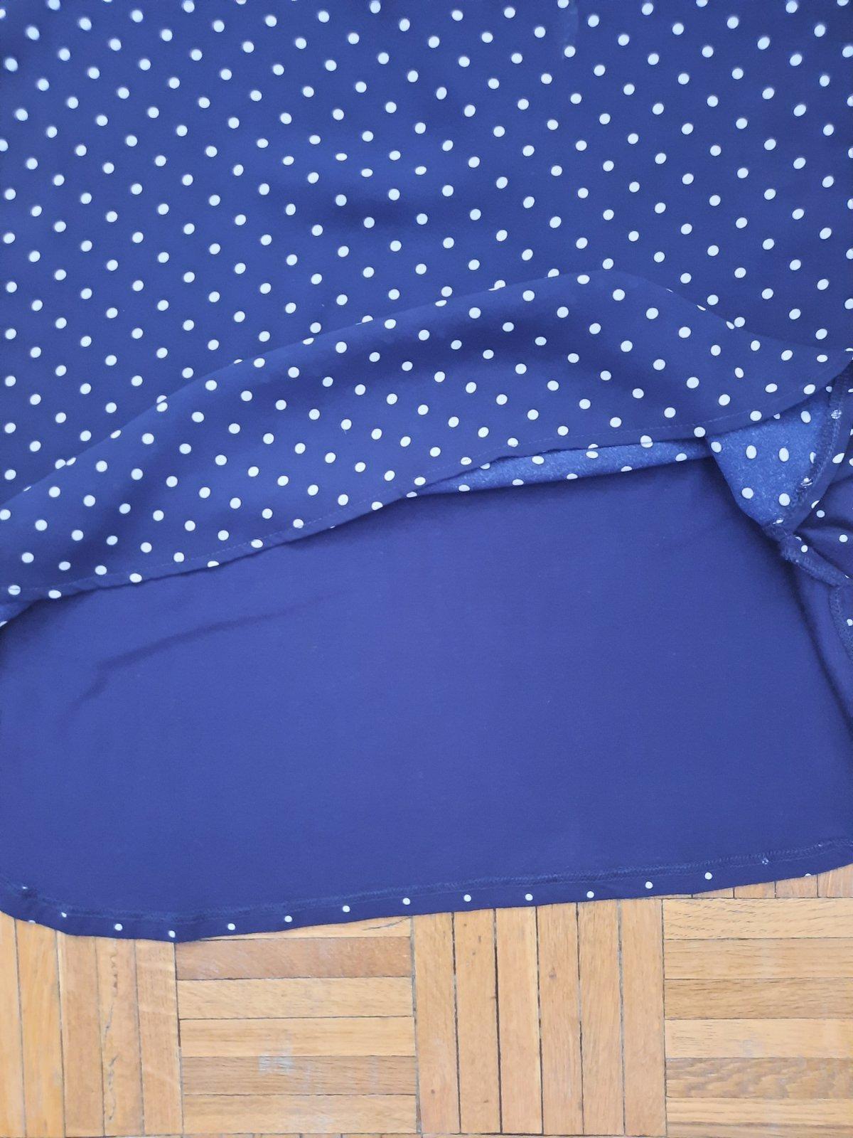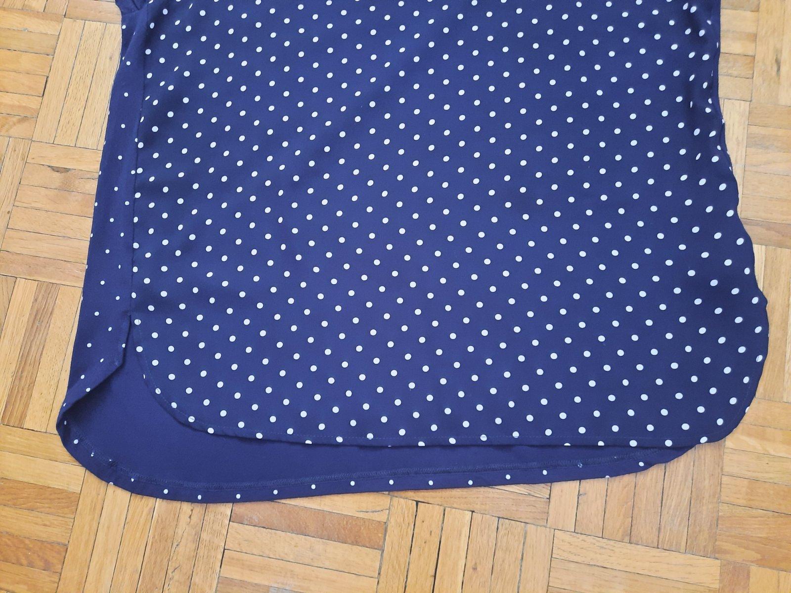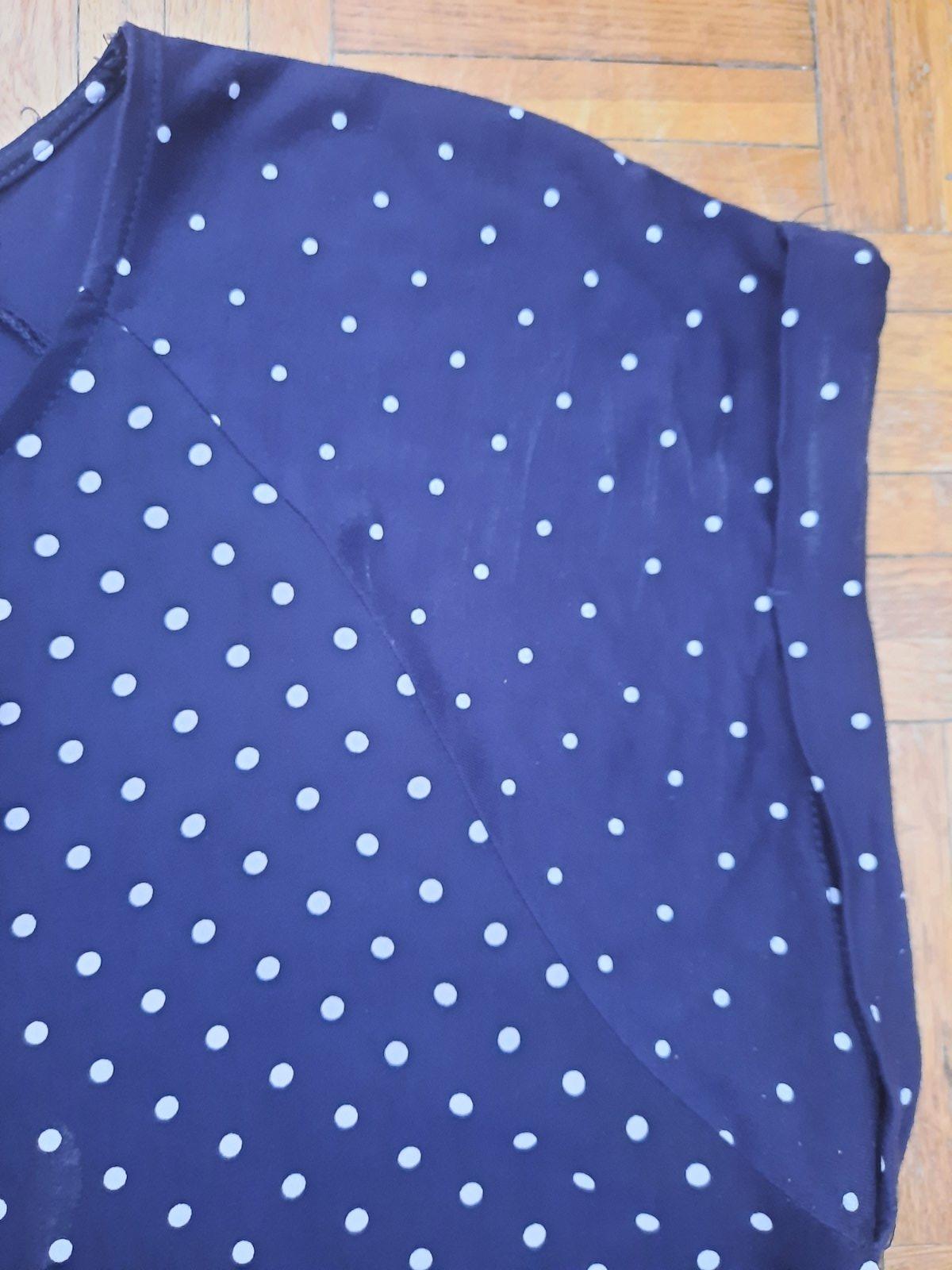 Super bodkovaná blúzka/ top vo výbornom stave. Predná časť je blúzkovina, rukávy a zadná časť je elastická tričkovina. Na bokoch je malý rázporok.