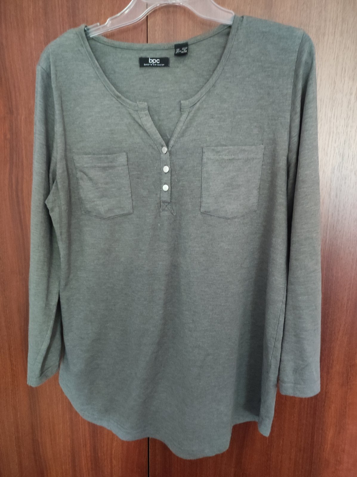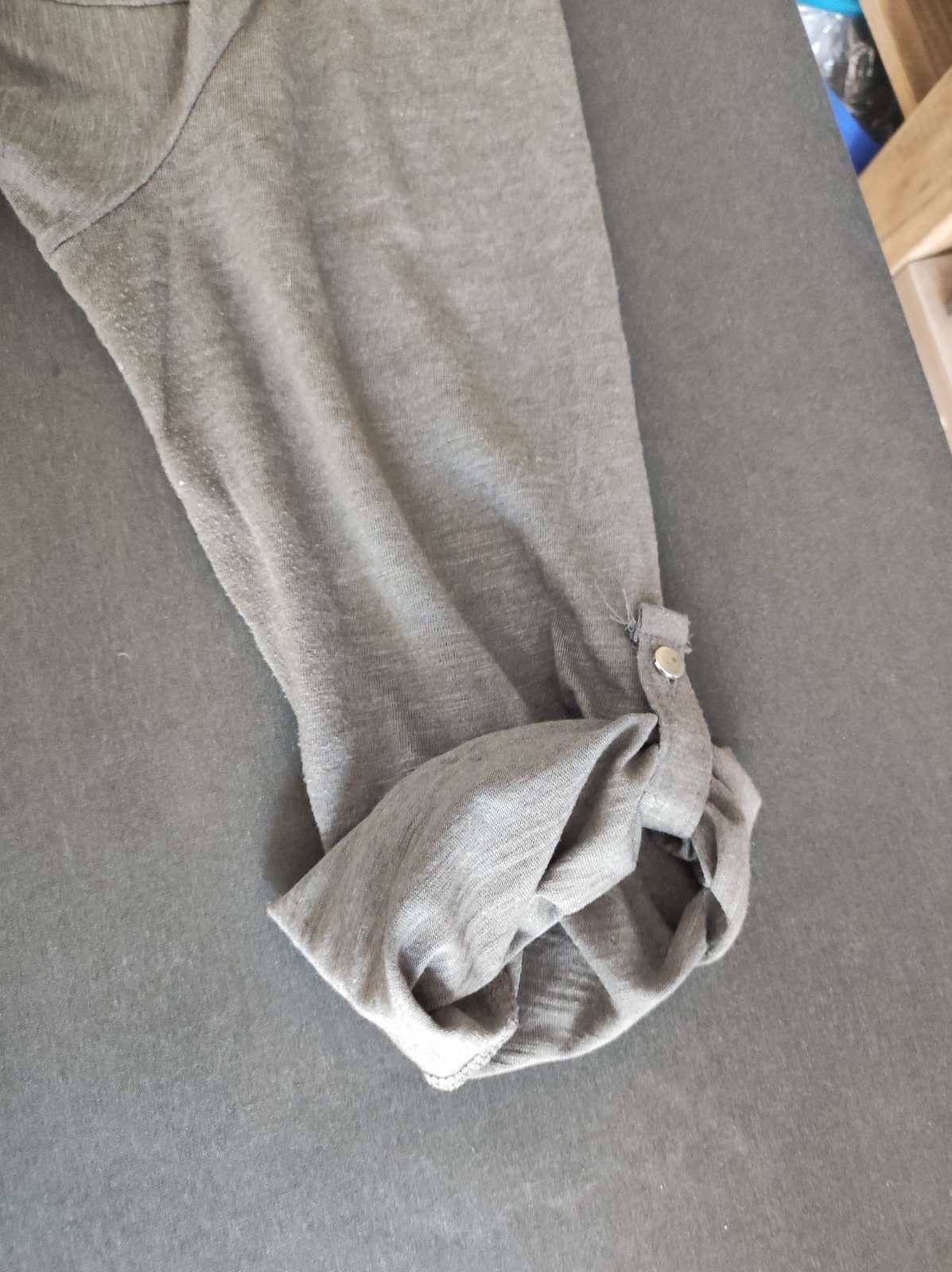 Predám sedozelene malo nosené tričko v zachovalom stave s možnosťou vyrolovat rukáv. Mini zmolky pod pazuchou. Šírka pod pazuchou 53cm x 2, dĺžka od ramena dole 67cm. Cena 3€ + poštovné