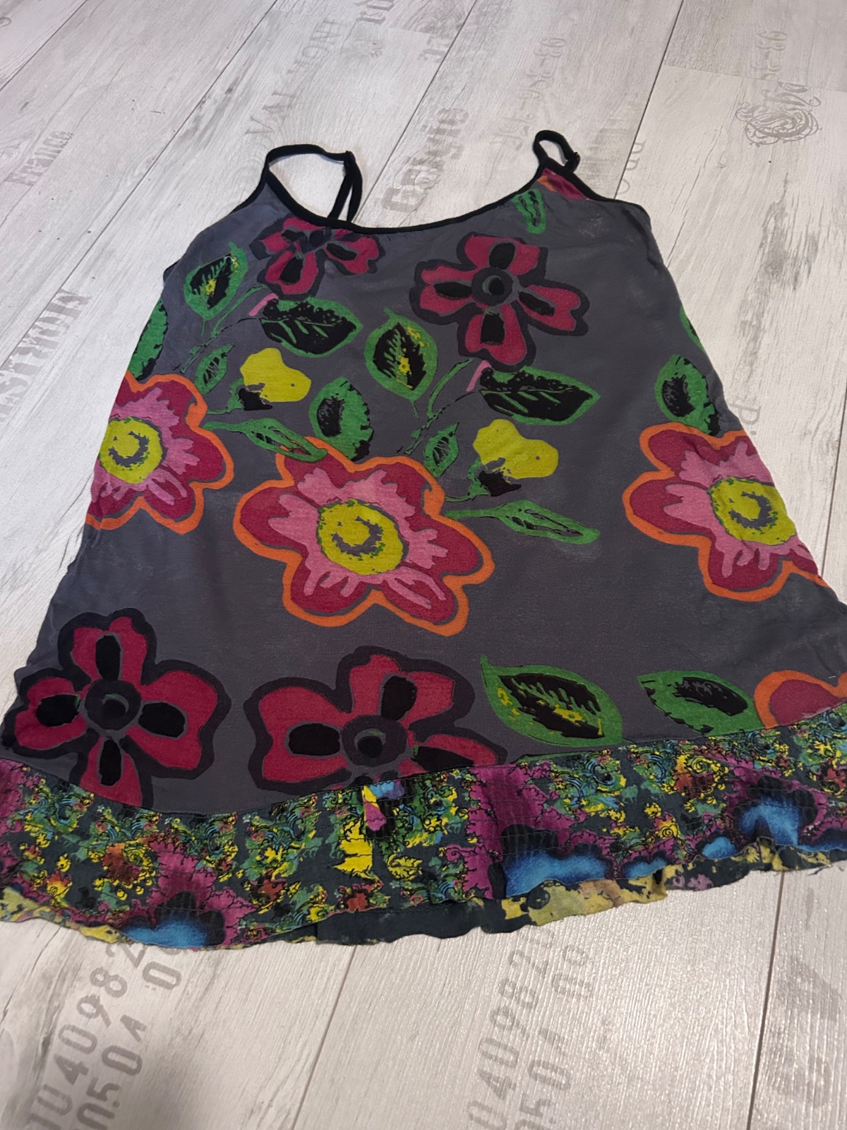 Velmi pekne dlhsie tricko, pekne vyzera k leginam. Velkost pisana L, ale sedi na M.