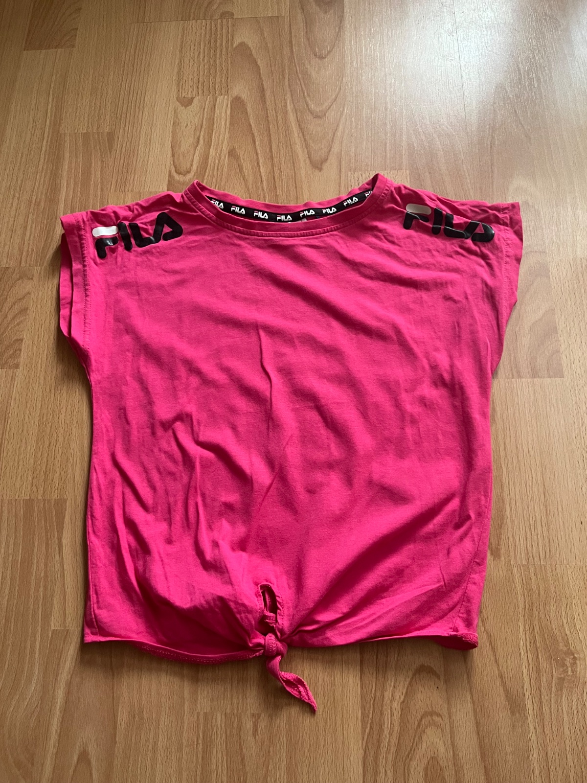 Krásne tričko Fila, bez poškodení, zaujímavé prevedenie, cena orientačná viď. rozmery, veľkosť píše 10,ale podľa mňa je to 134/140,cena plus poštovné