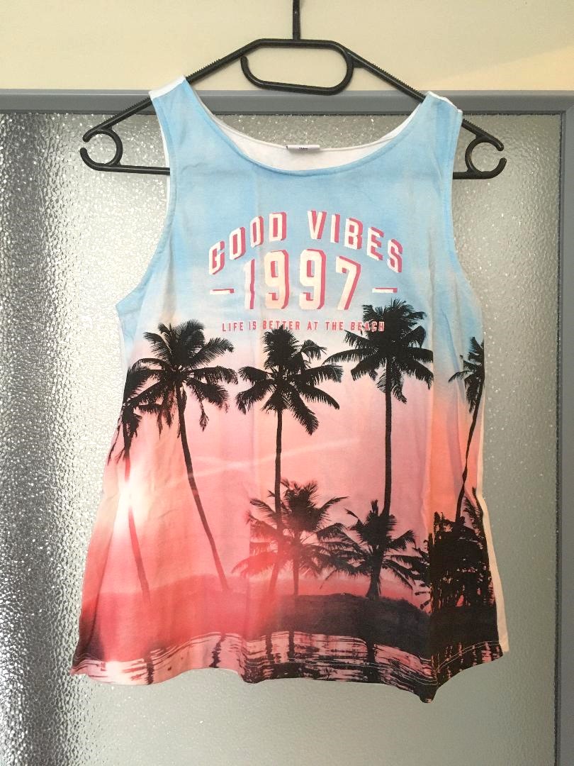 predám dievčenské letné tielko v dobrom nosenom stave, píšu veľkosť 12-14 rokov, 158/164, značka Page one, materiál: 57% bavlna, 43% polyester, rozšírený strih