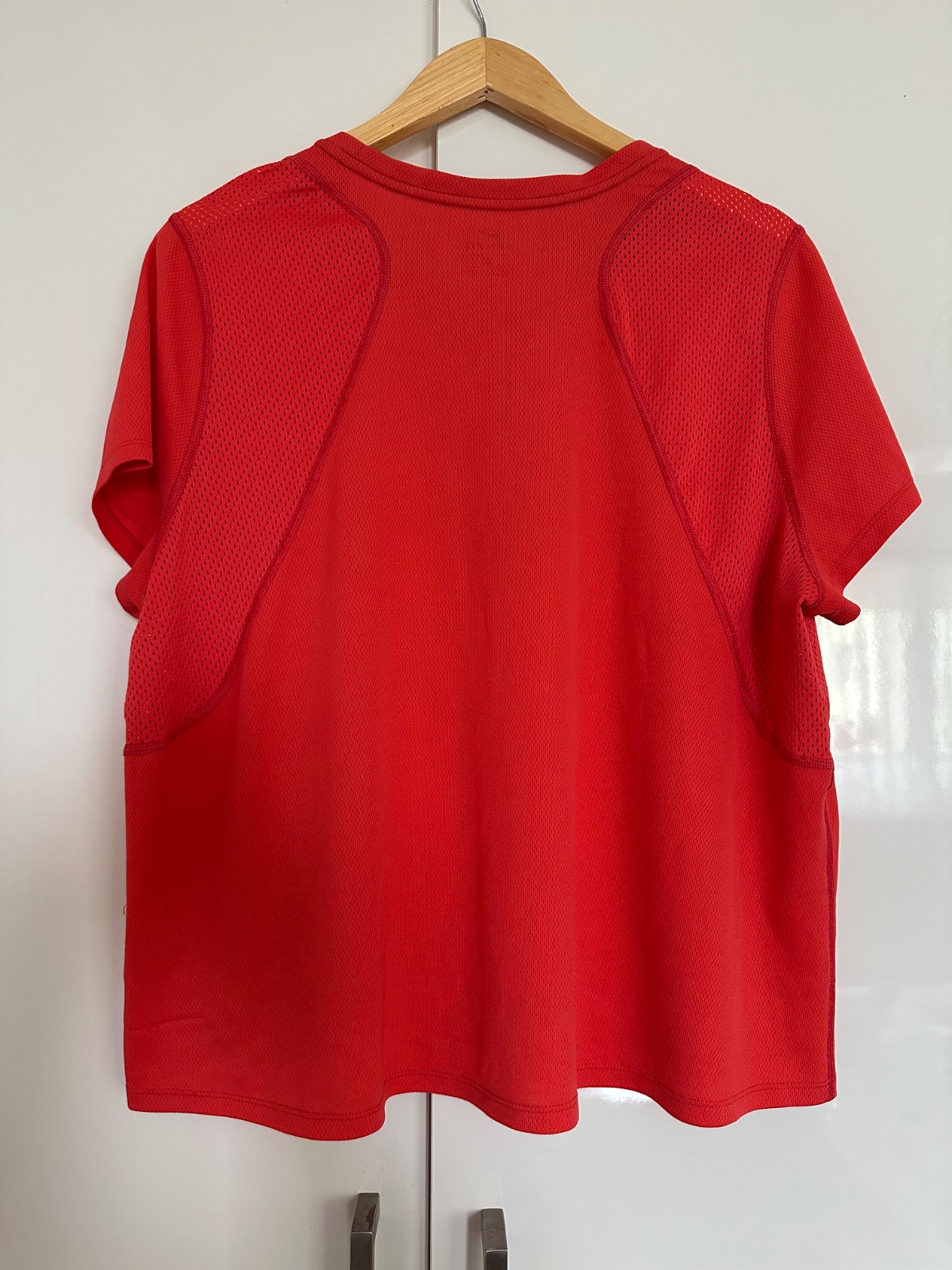 Krasna koralovoruzova farba. Tričko je vo vybornom stave, ma len par zatrhnuti.