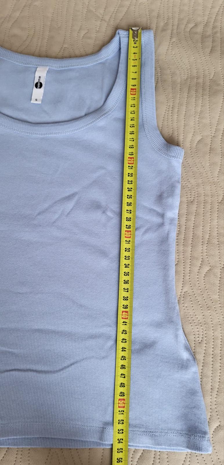 Dĺžka 31cm, s ramienkami 42 cm, ramienka sú vlastne taká guma, teda sa natiahnu ešte, šírka 2x34 cm, bez poškodenia, 96% bavlna, 4% elastan