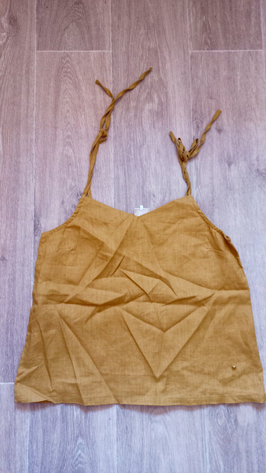 Mladícky top na ramienka , ktoré sa viažu. Látkový. Sirka 40 cm, dĺžka 42 cm. Rovný strih