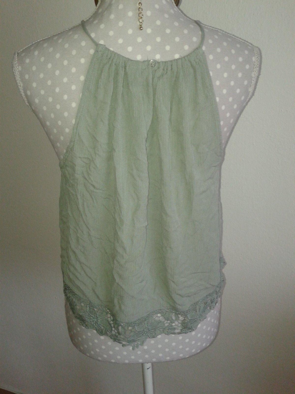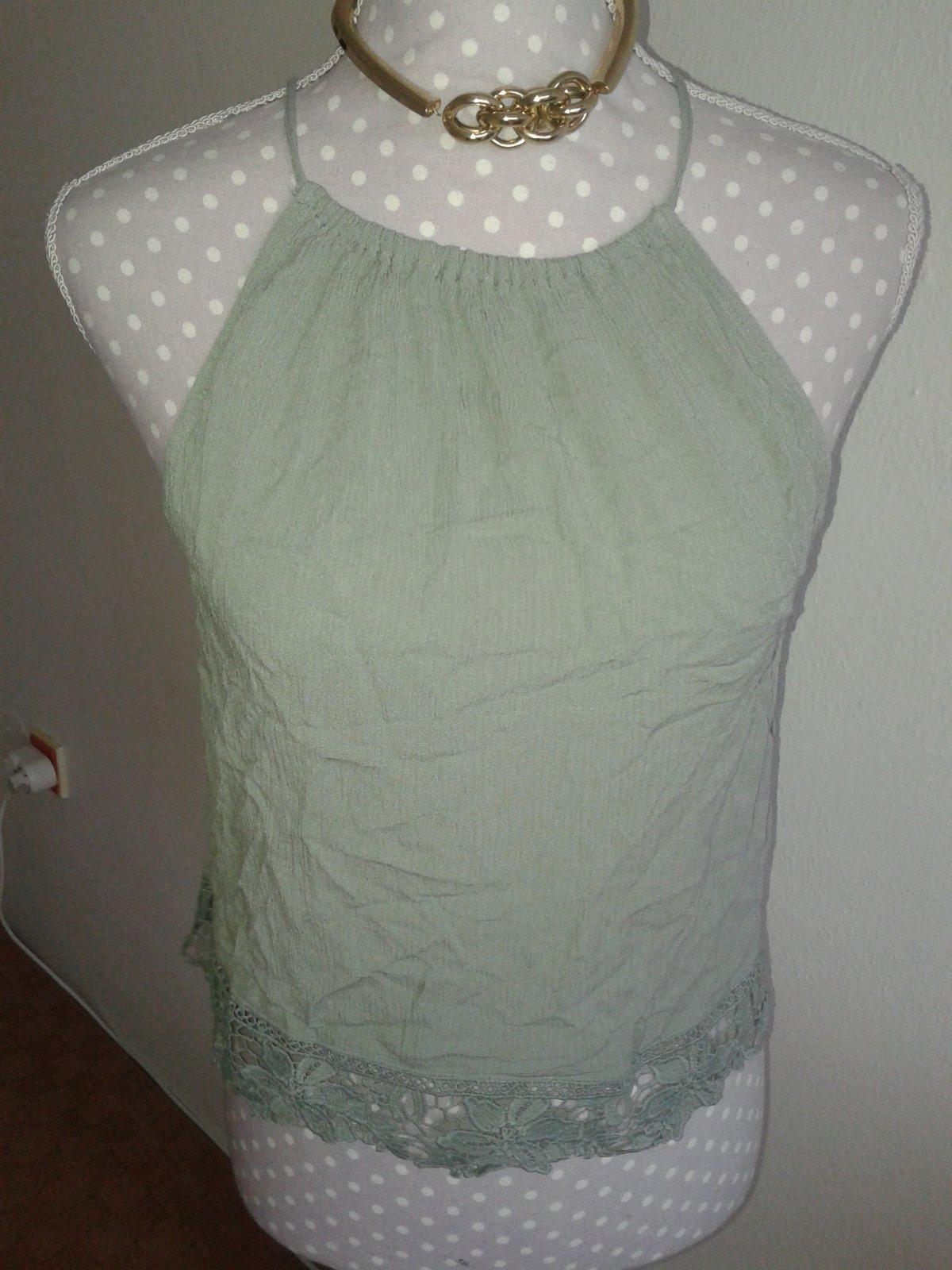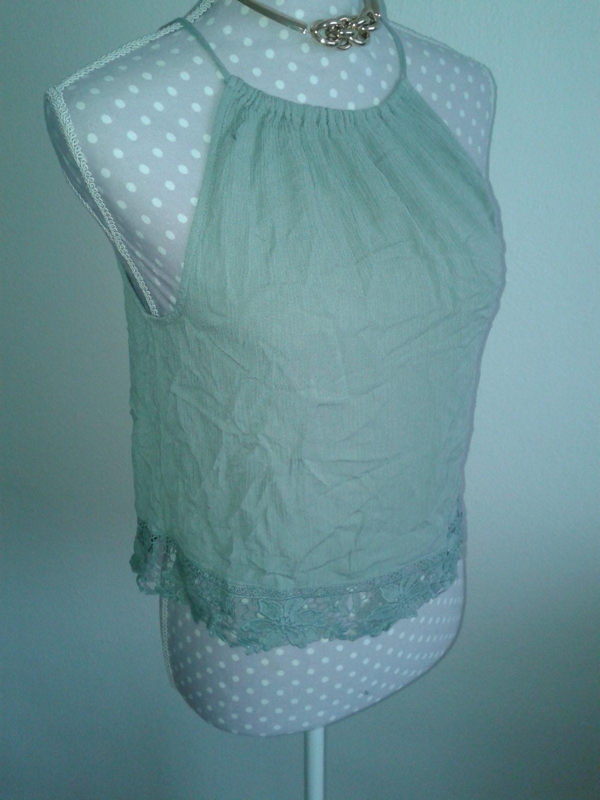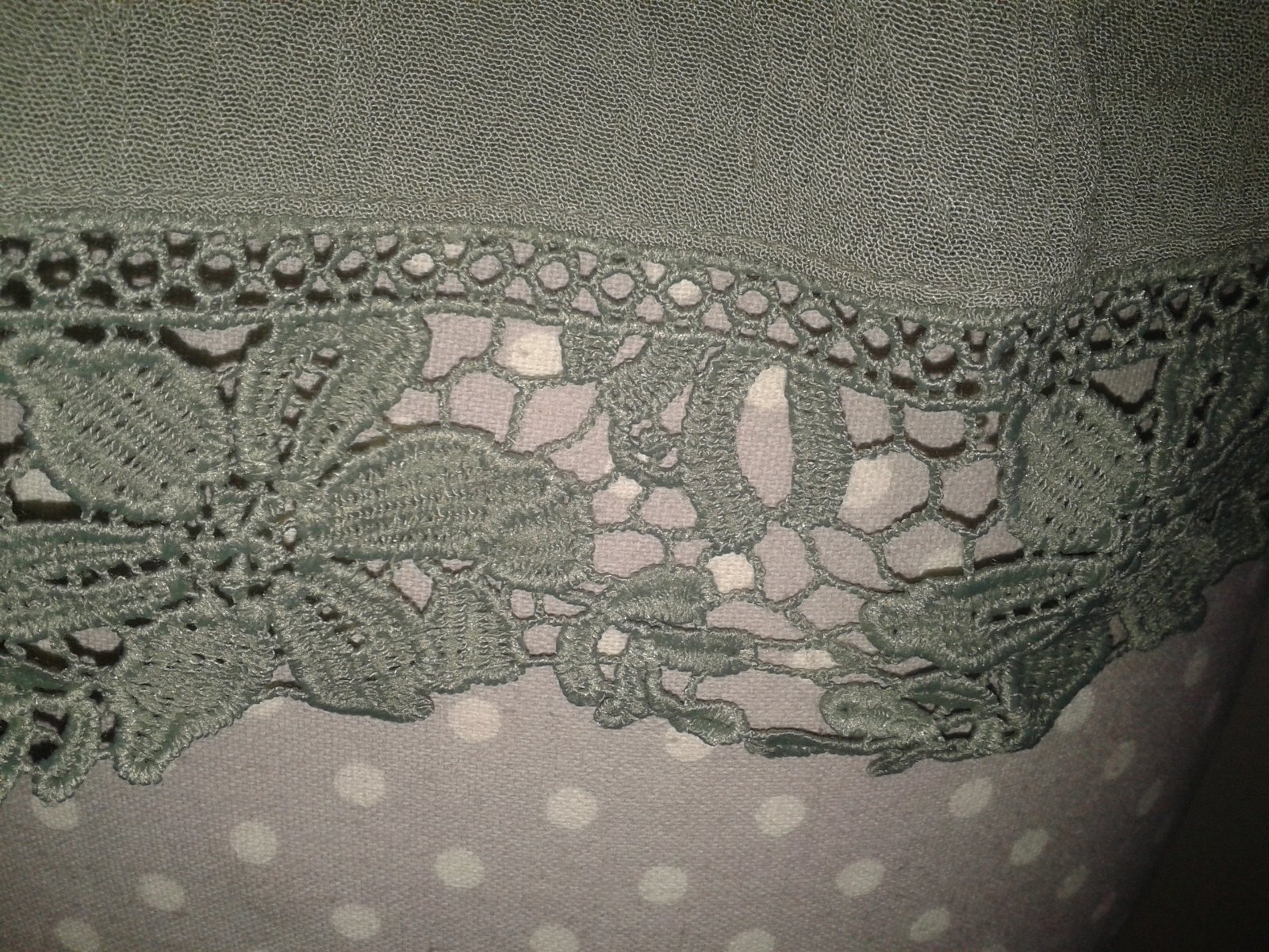 olivovozelený bavlnený top s čipkou na spodku, 1x oblečený, veľ. S, neelastický