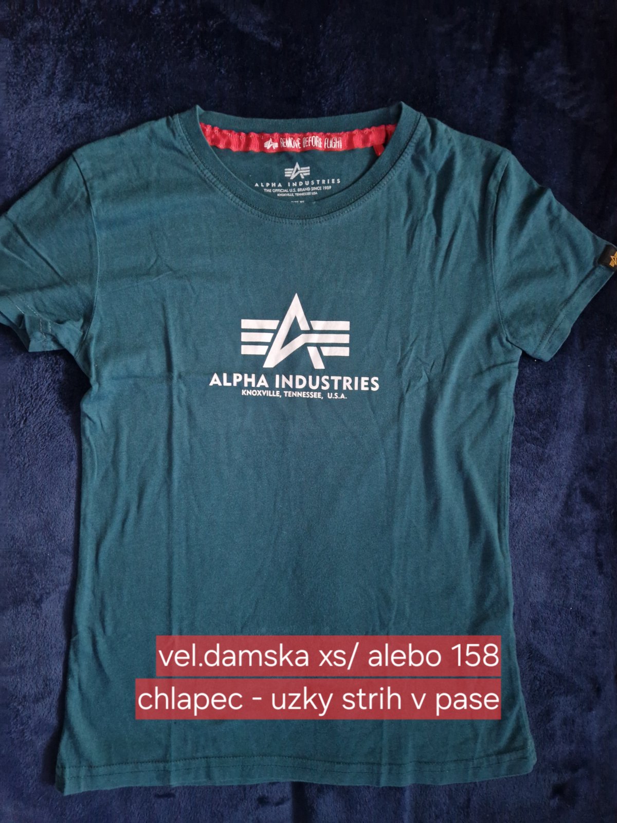 Predam original tricko Alpha Industries,velkost je damska XS/ alebo na chudeho chlapca na vysku cca 152-158cm,vhodne pre dievca chlapec.Stav 100%!,oblecene 3-4x. Cena 18€ + posta(po prevode) alebo osobne.