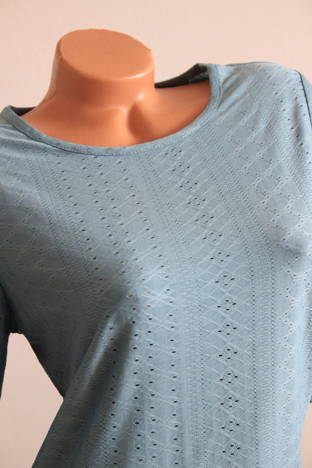 Tyrkysový dierkovaný top, veľkosť M/L, elastický materiál.