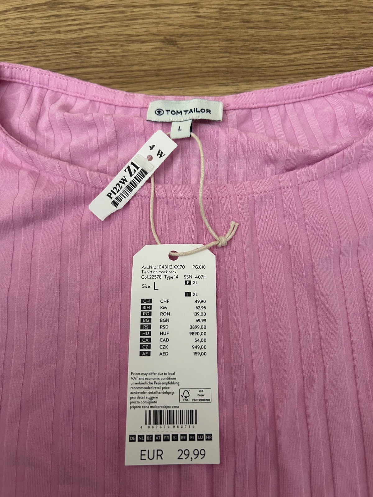 Nove tricko, s vystrihom, vzadu napis. Tom Tailor
