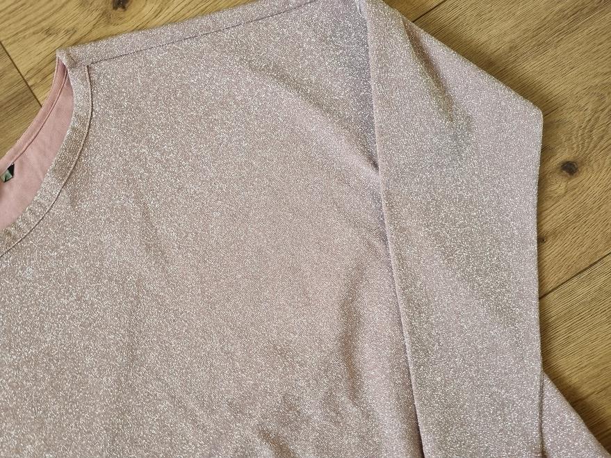 dlžka 62, rukáv od krku 67, prsia 55x2, mierne elastický, farba staroružová so strieborným vláknom, 1x oblečený