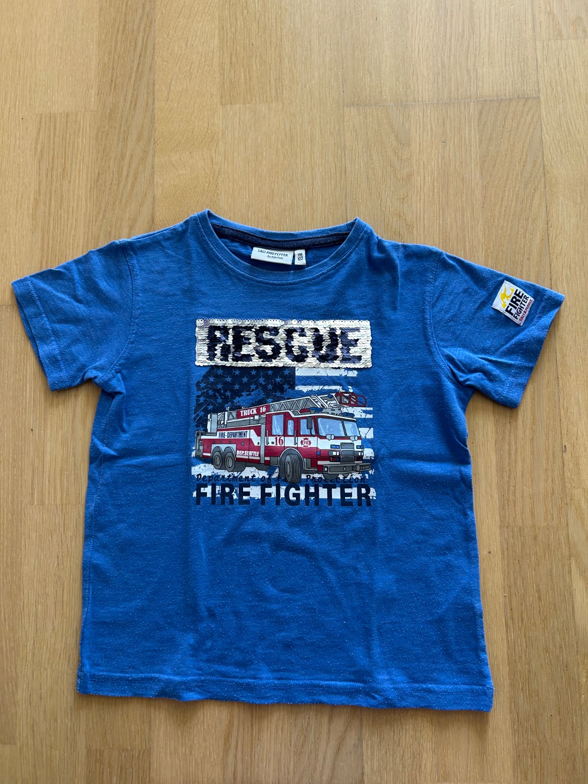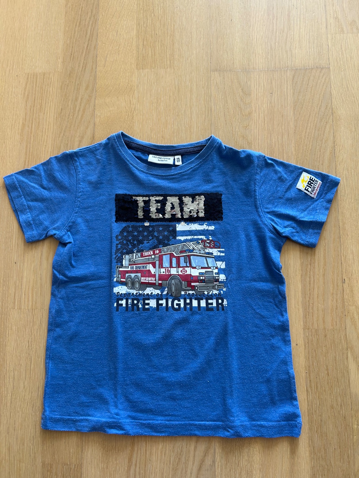 Kvalitné značkové premieňacie tričko s hasičským autom bez poškodení.