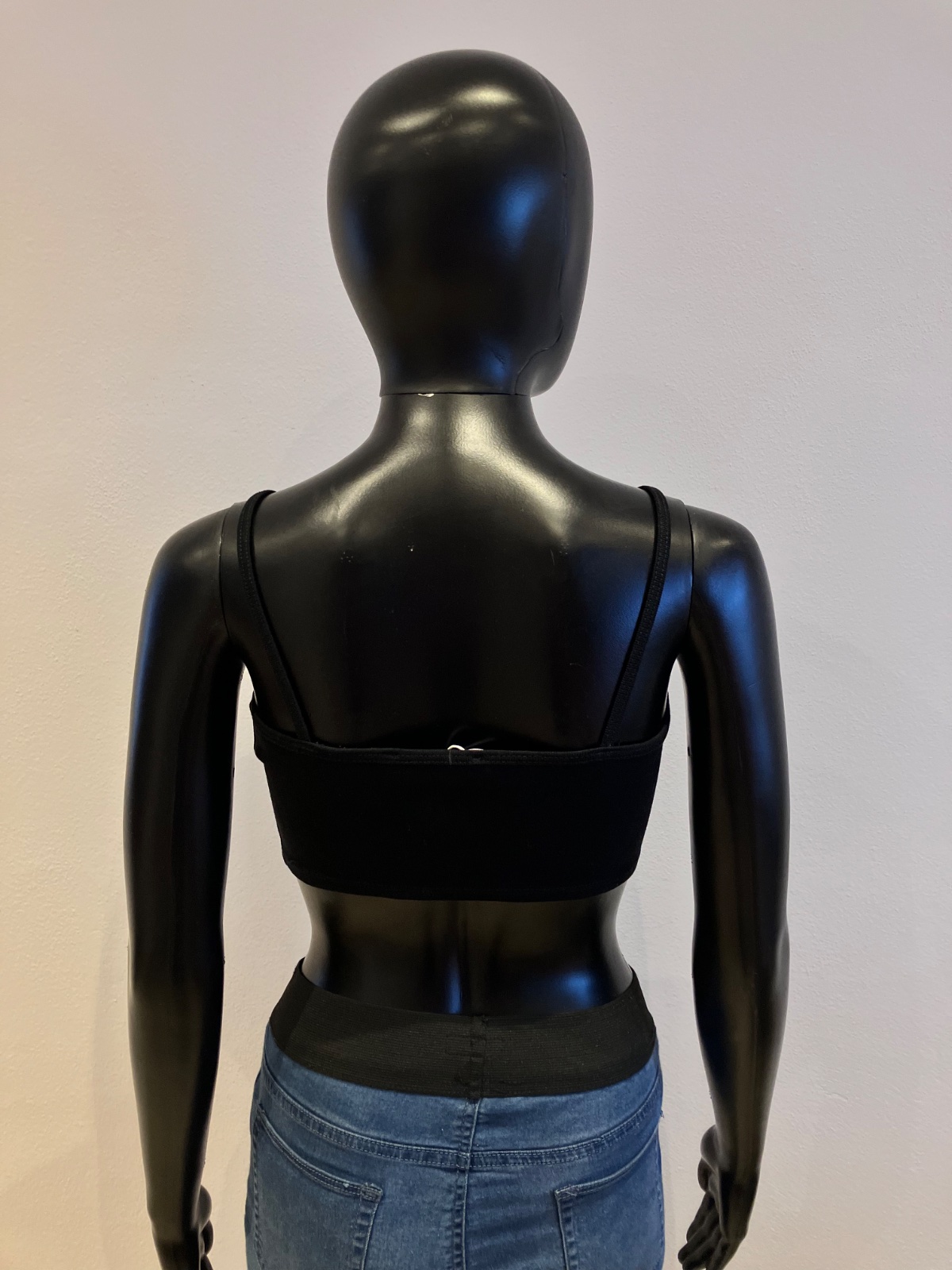 Čierny crop top s bielym nápisom Bershka (XS)