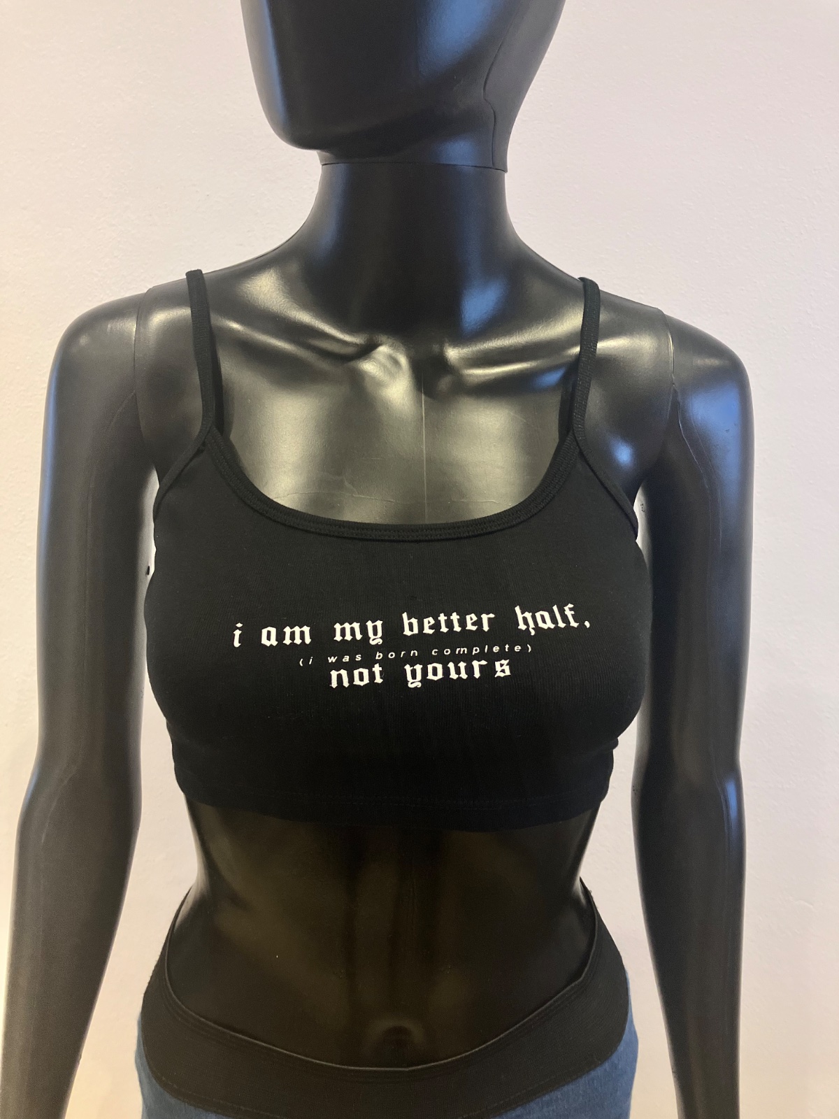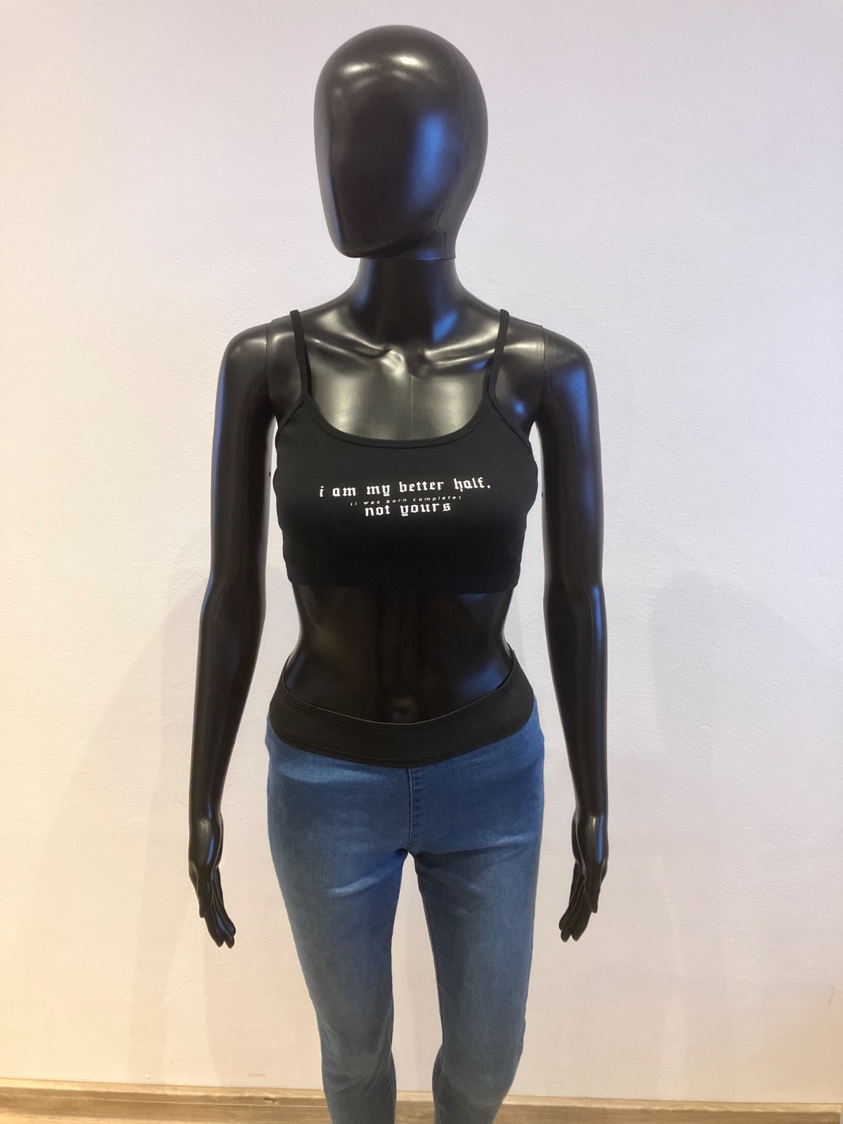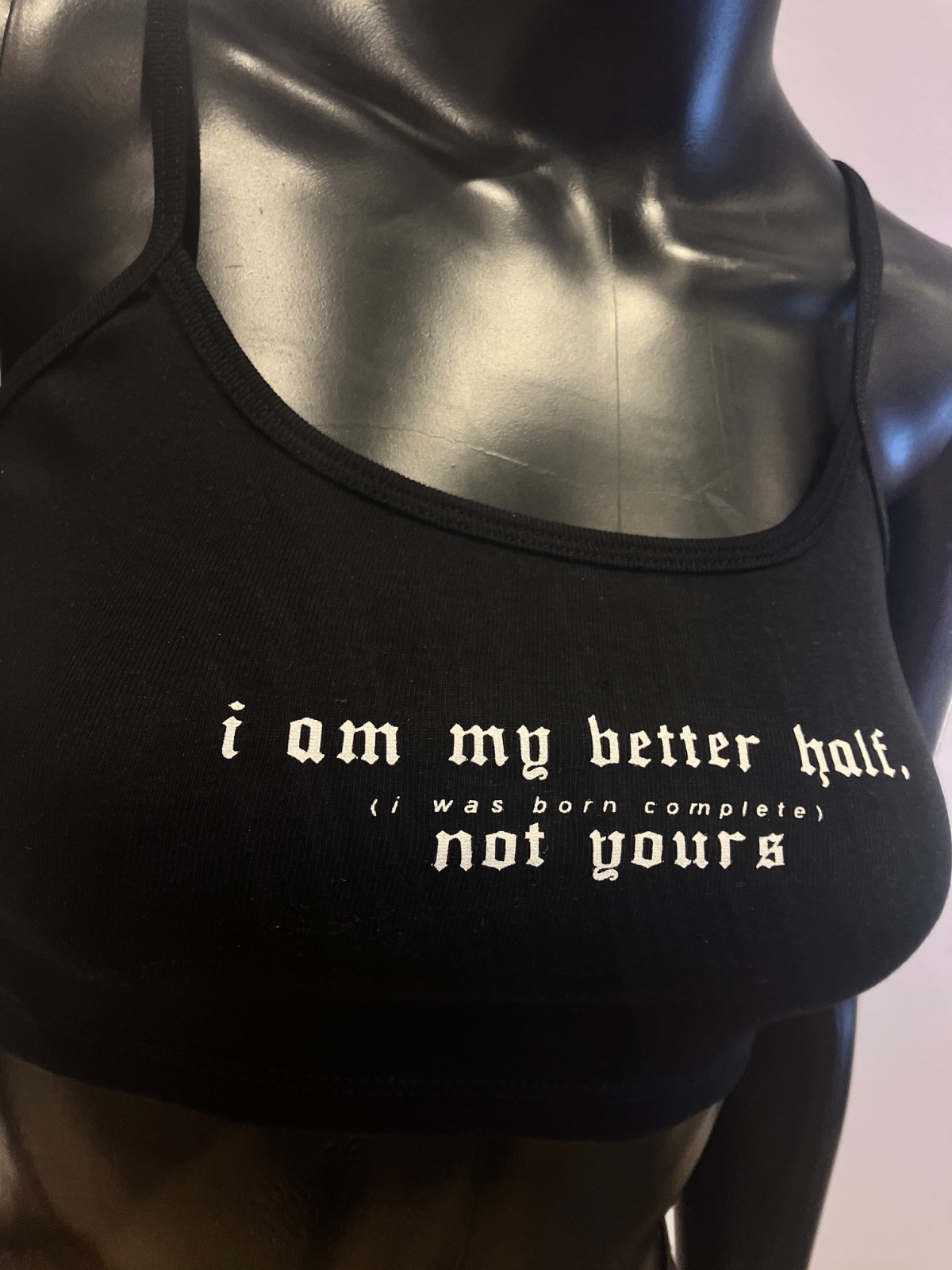 Krátke tričko na tenké ramienka s nápisom, elastické, materiál 96%bavlna,4%elastan.
