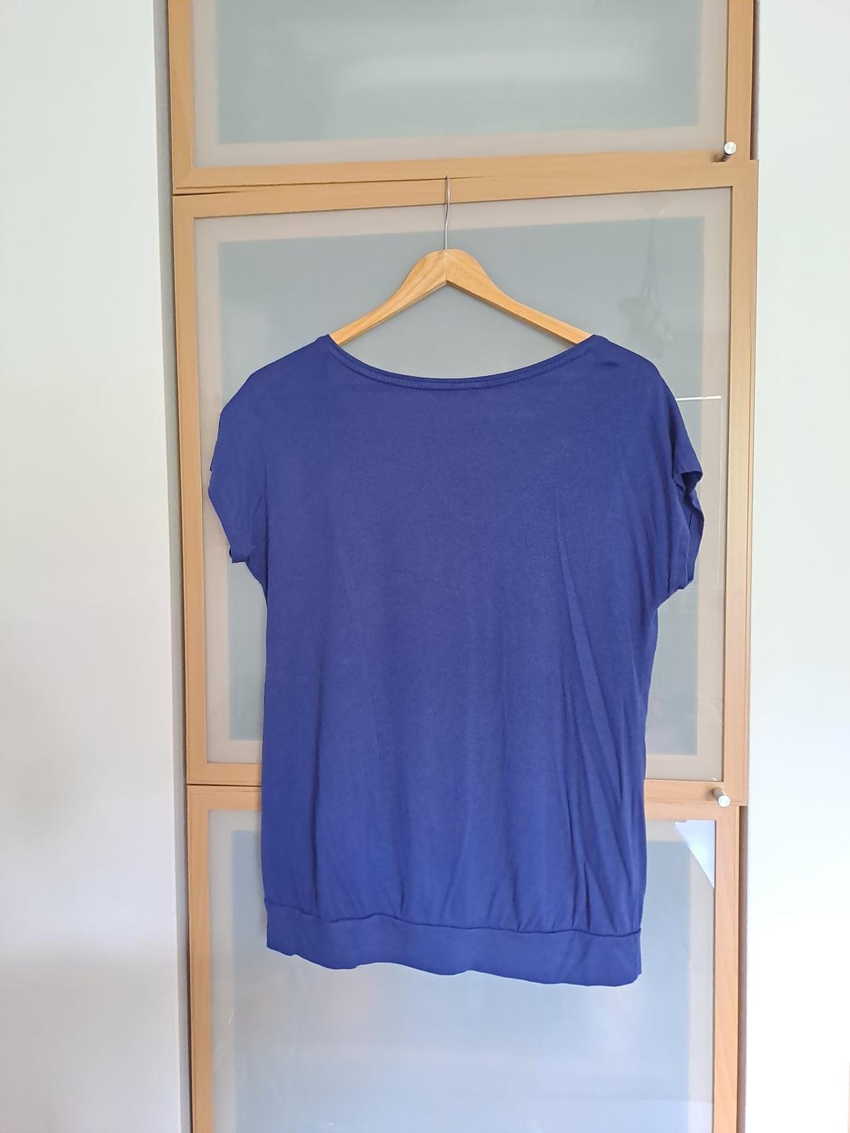 Veľmi pekné pohodlné tričko voľnejšieho strihu vo veľmi dobrom nosenom stave, len vzadu dole pár žmolkov, len mierne priesvitné, dĺžka od pleca 70cm, šírka pod pazuchami 50-58cm.