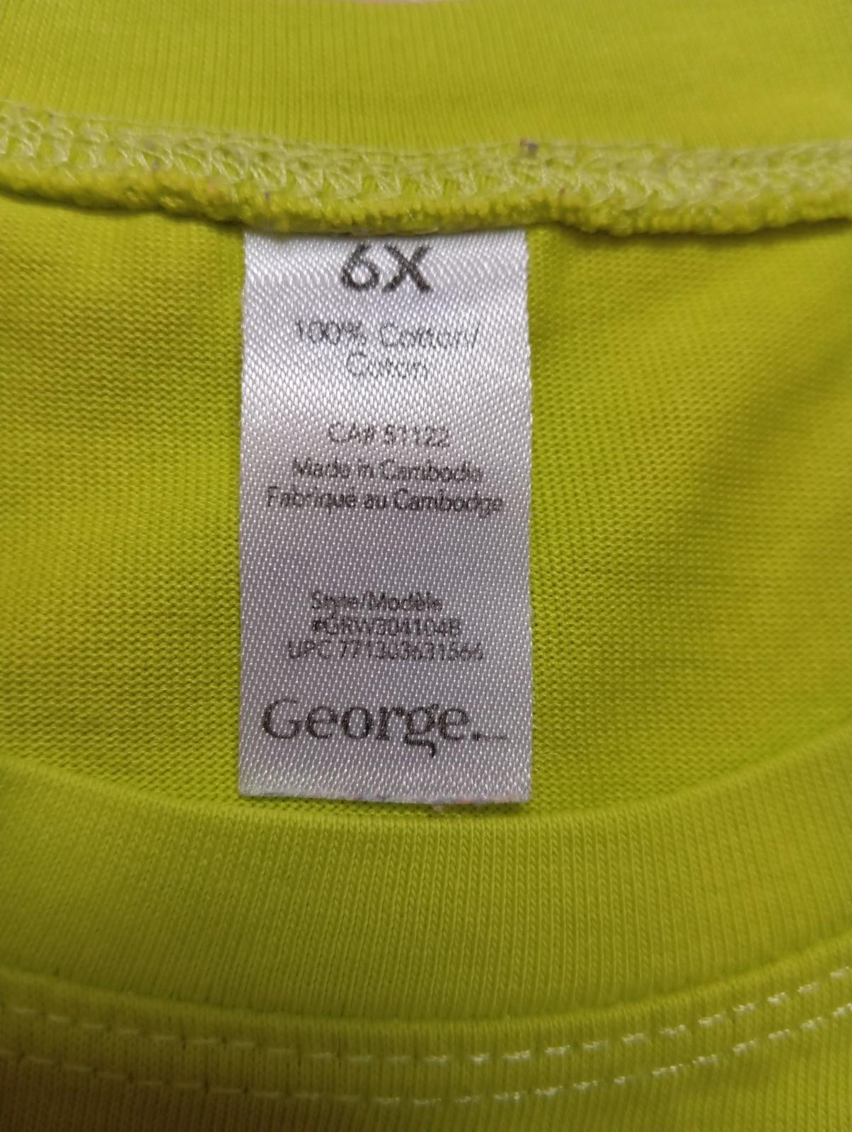 Tričko krikľavo-zelenej farby, zn. George. Pekný nosený stav- bežné známky nosenia, bez dier, bez fľakov, len trošičku ošúchaný obrázok.