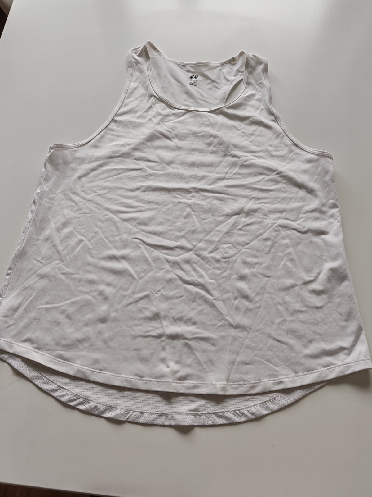 178k. biele letne tielko kamienky, zn. HM, velk. 40/42, 100% viskoza, elasticke, nosene, neznicene, dlzka 50x2cm plus ramienka na zavazovanie, cez prsia 39-46x2cm