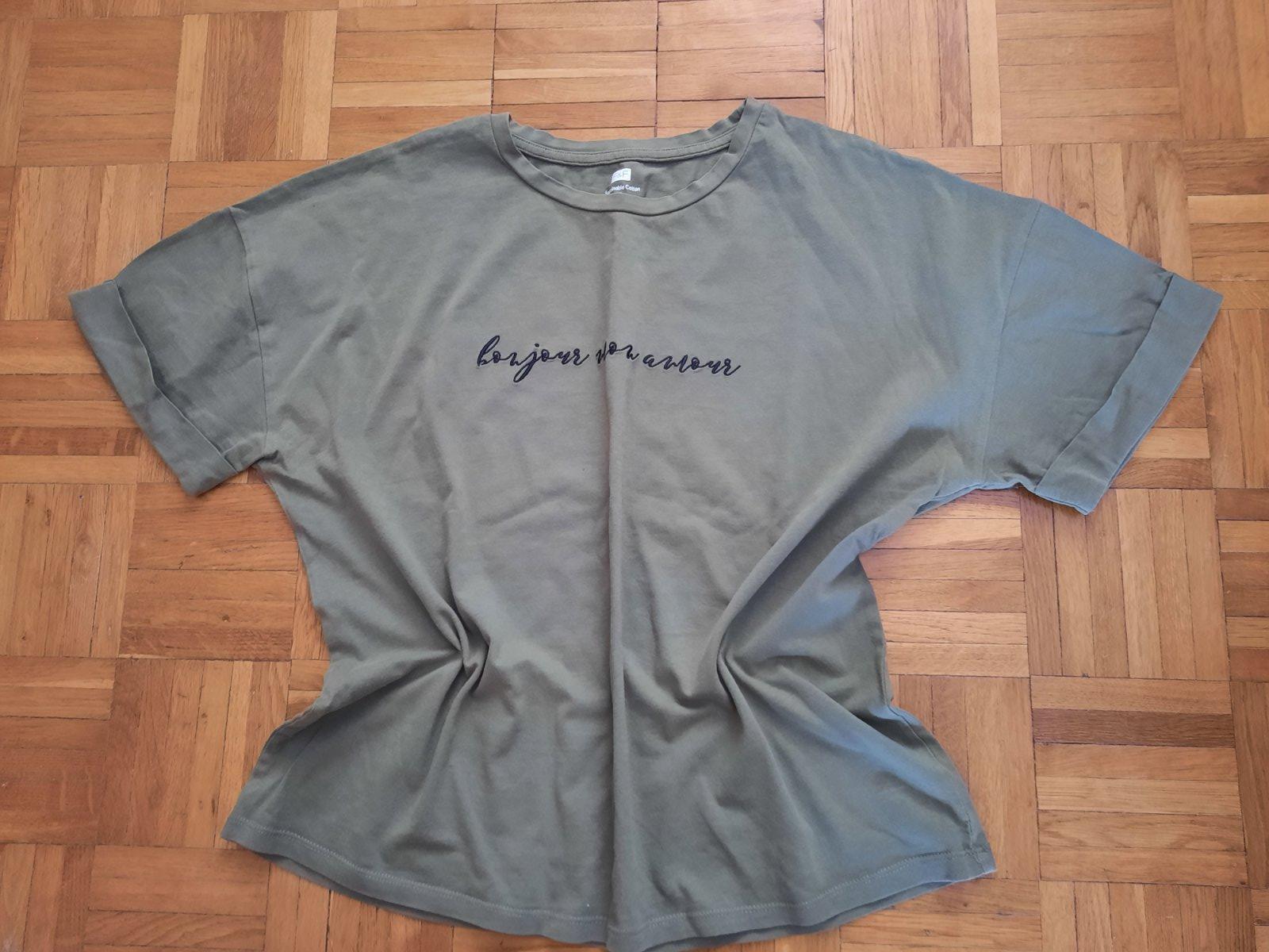 Moderné dámske tričko, klasický strih s modernou aplikáciou. Veľmi pekne oživí váš outfit. Pekne sadne na akéjkoľvek postave. Veľkosti: M-L, XL-XXL. Ihneď k odberu.