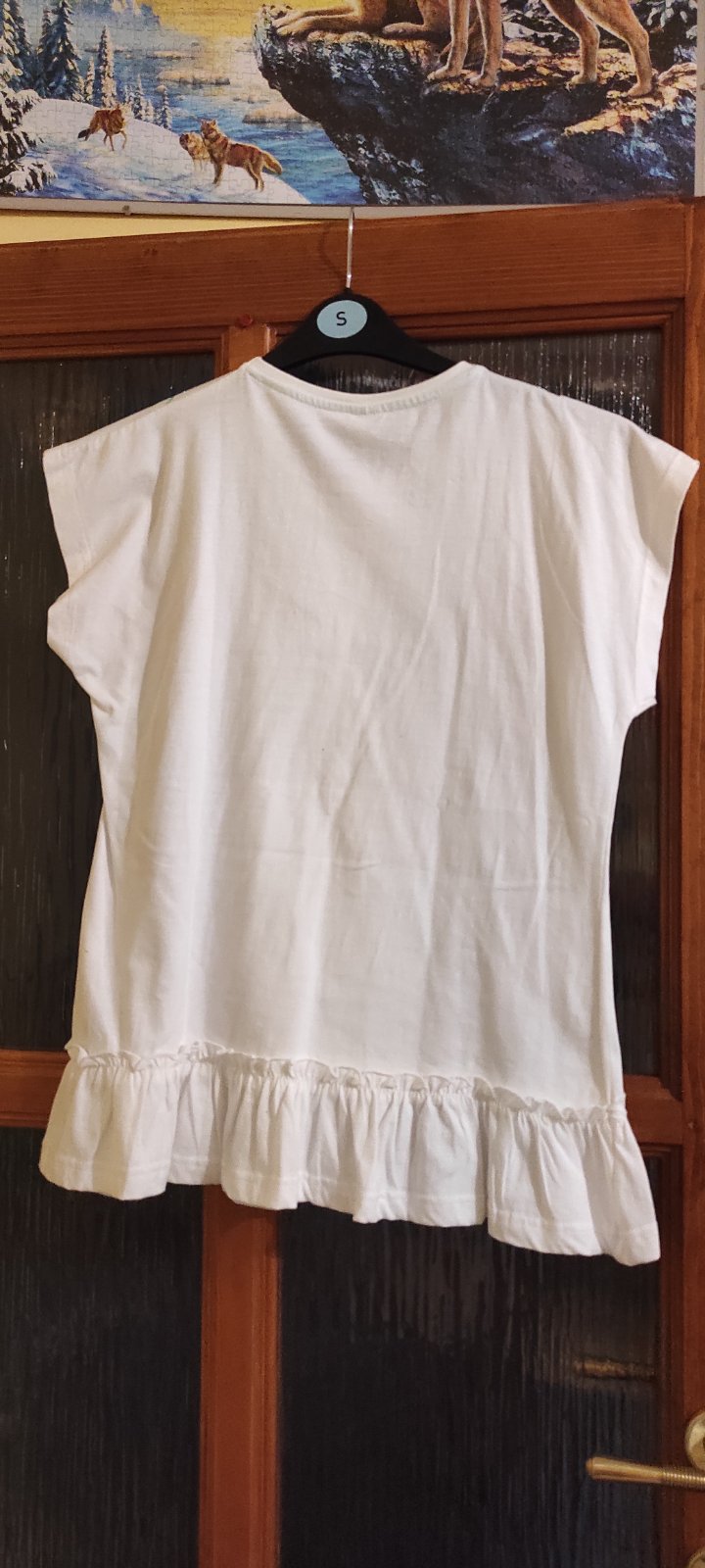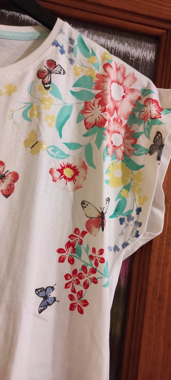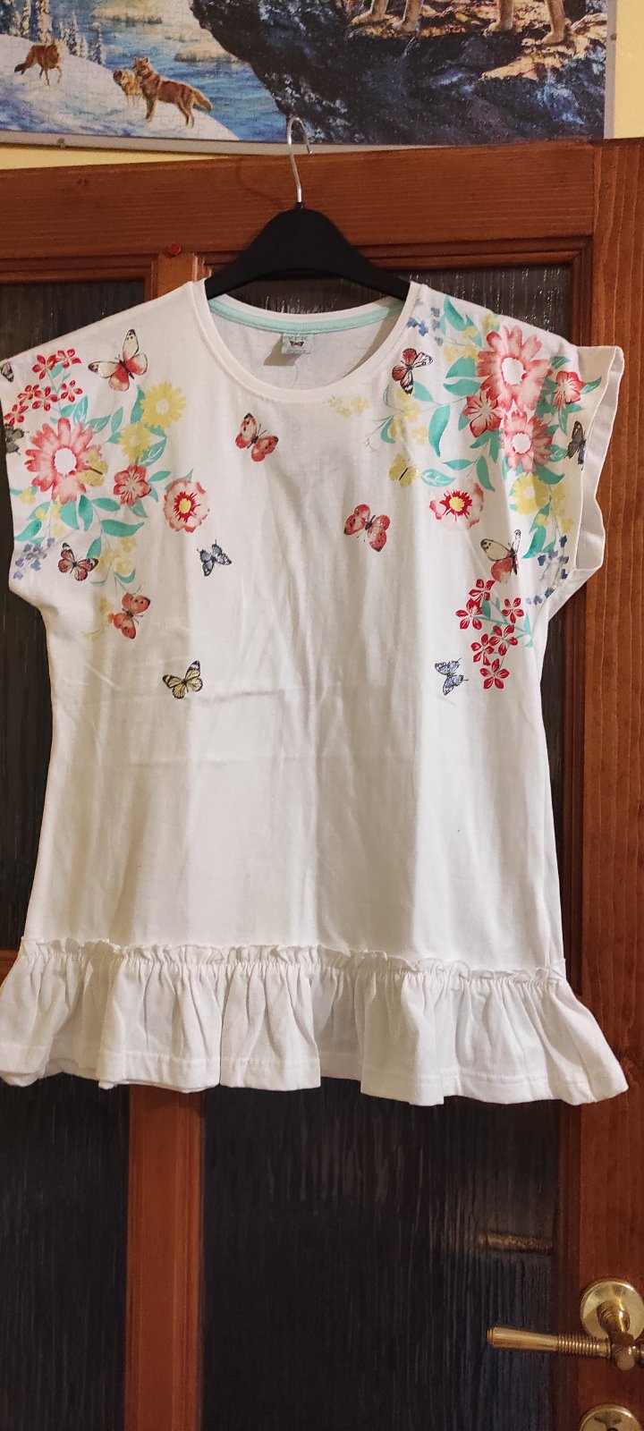 Veľmi pekné biele z kvetmi a motýľmi,volanik na spodu, materiál bavlna, veľkosť 170/176/14+