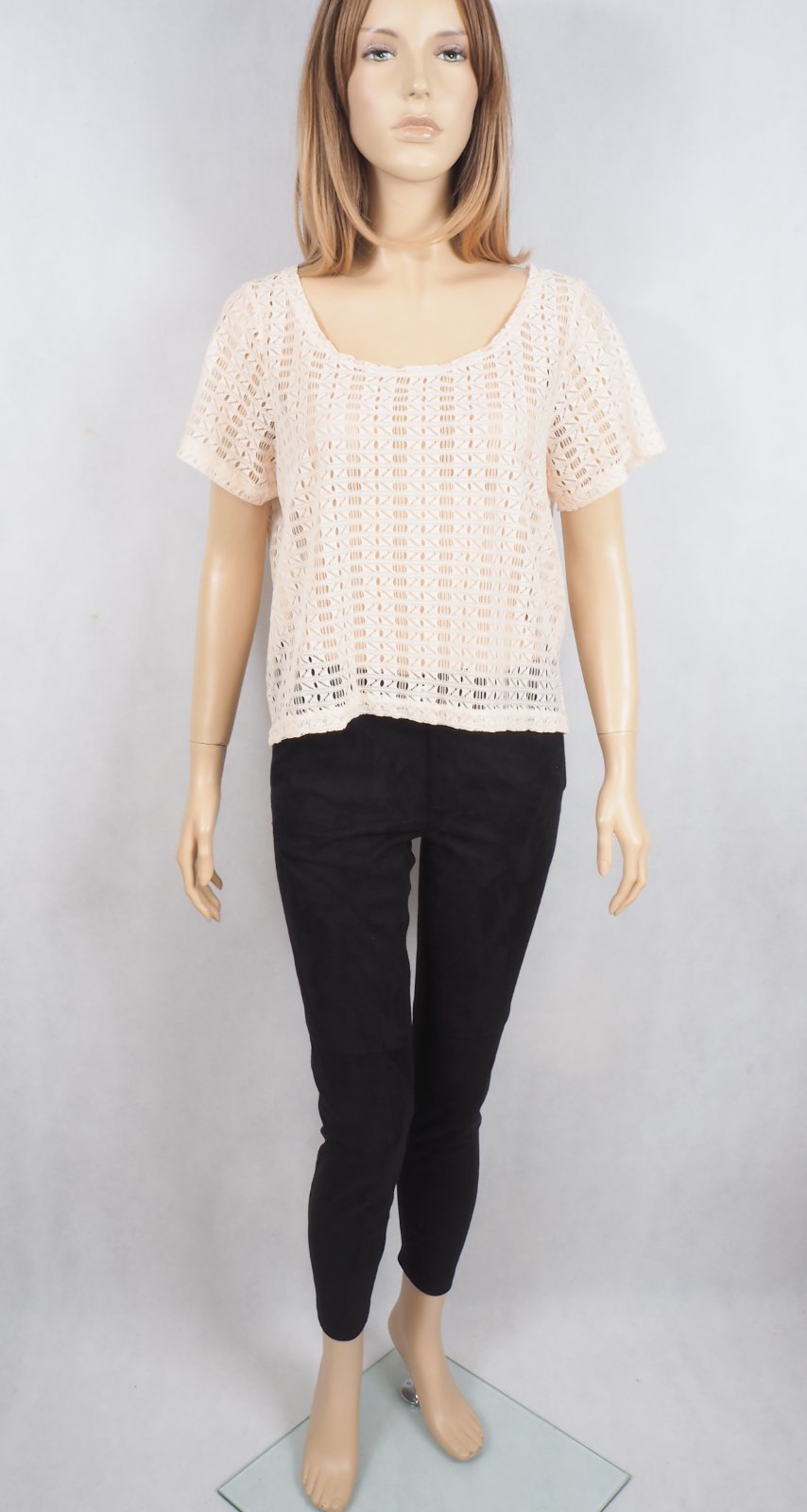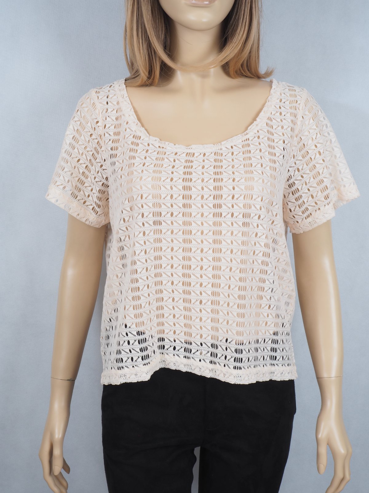 Kvalitný čipkovaný top, transparentný, materiál 100% polyester, nový s visačkou.