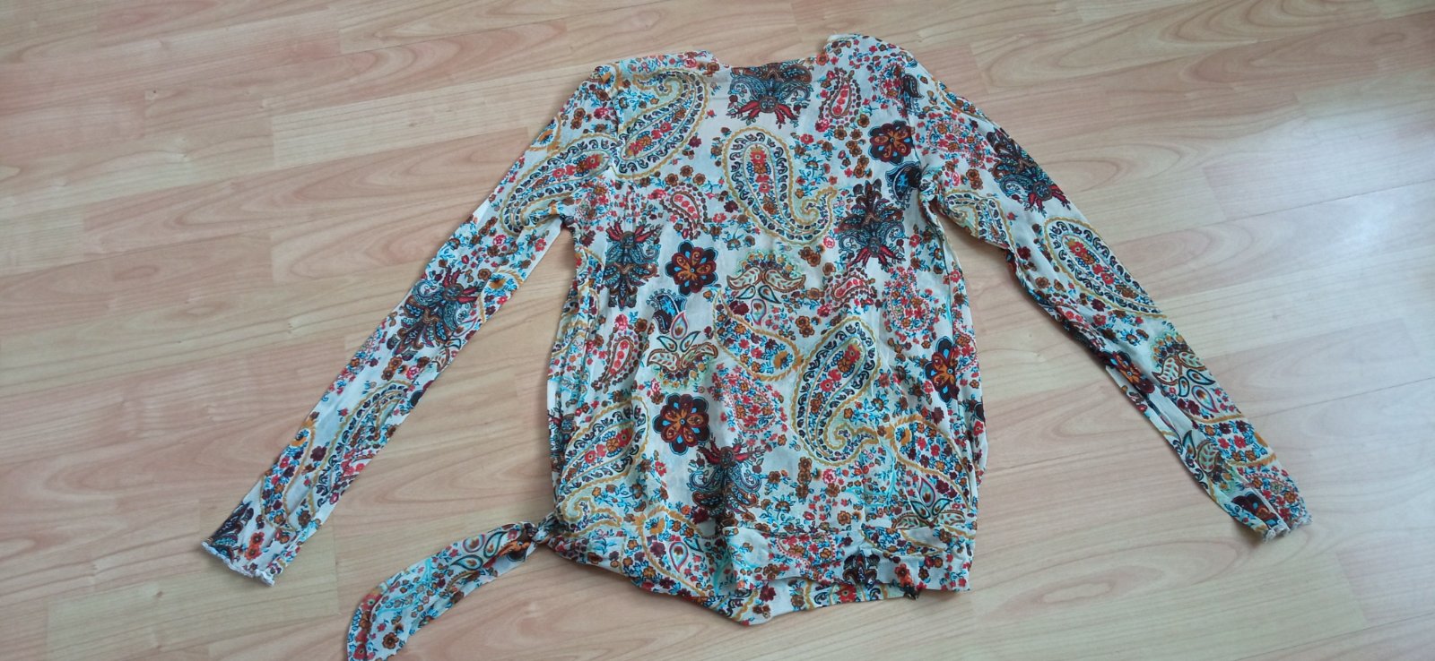 Zaujímavý top. Zachovalý. Možno malé zatrhnutie (satén okolo výstrihu), ale úplne prehliadnuteľné. Vel cca 38, štítok som odstrihla. Miery na foto