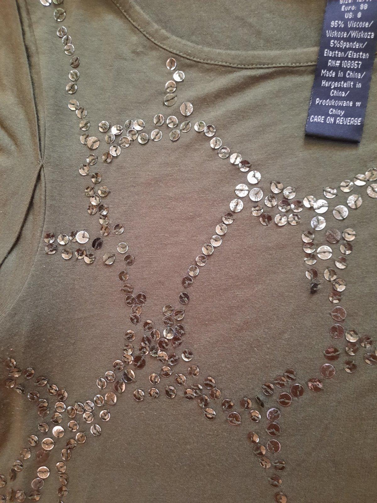Super elastické úpletové tričko/ top s flitrami na prednej strane. Výborný stav.