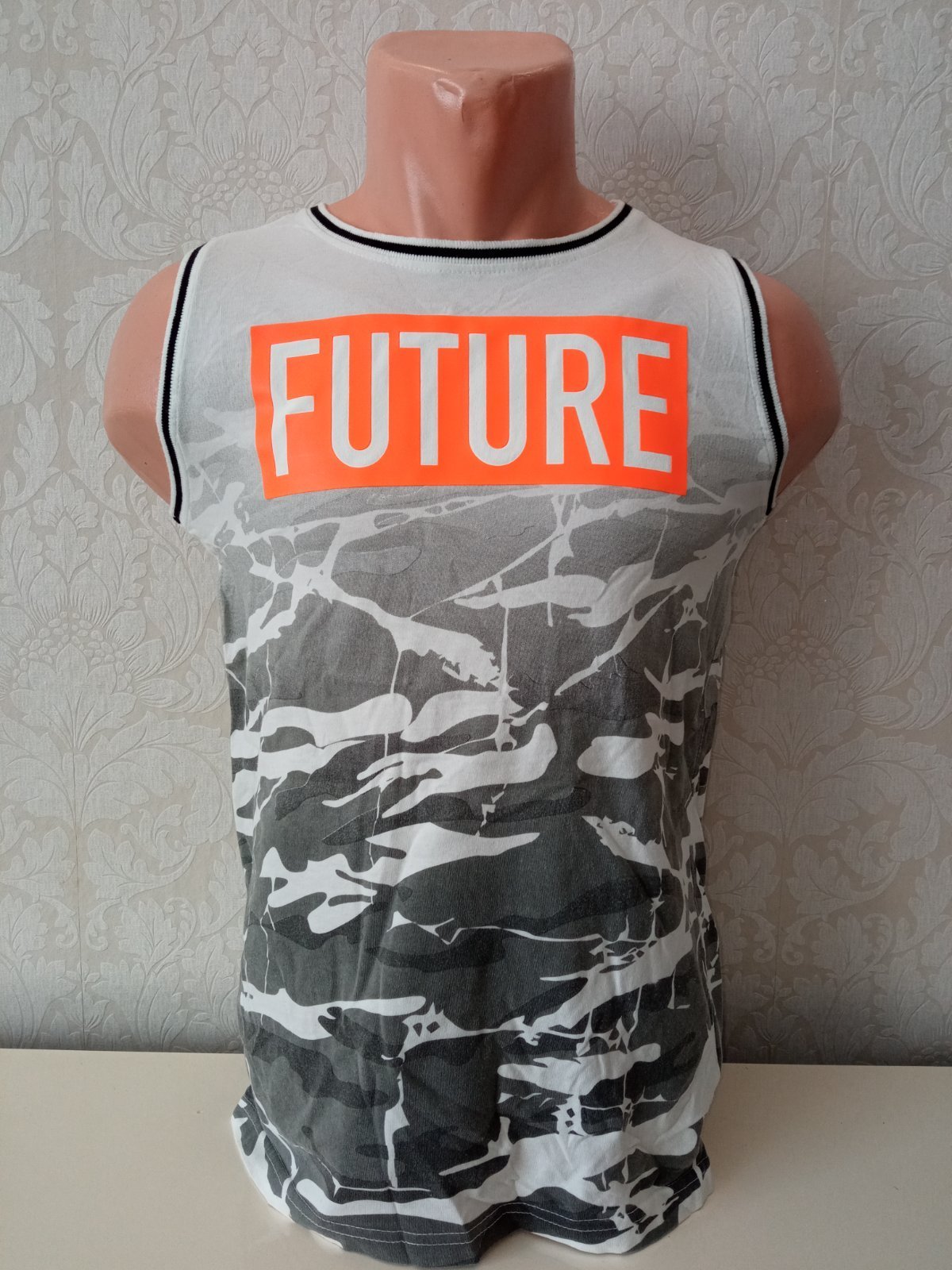Chlapčenské vzorované tielko s nápisom (12-14 r.)