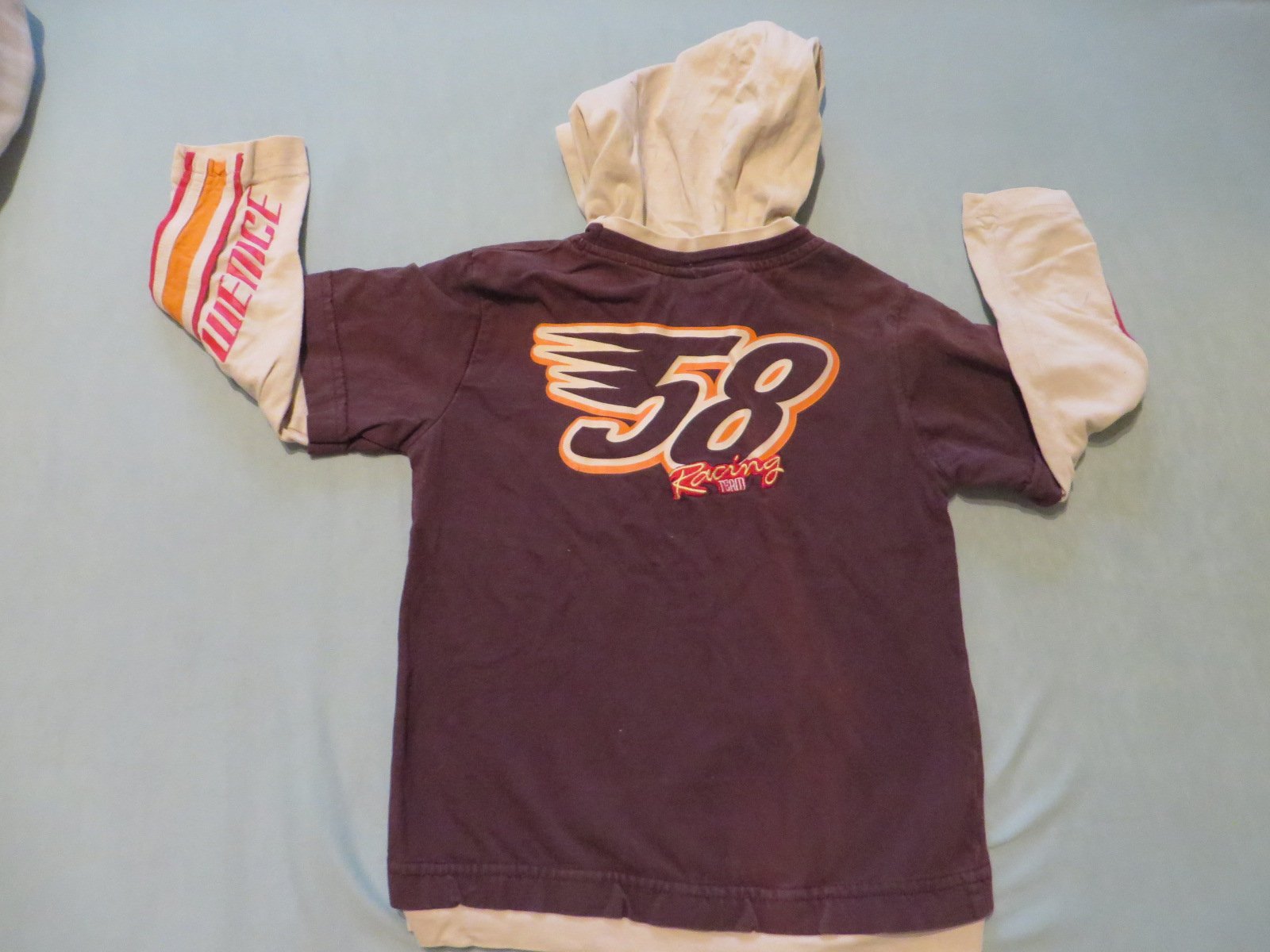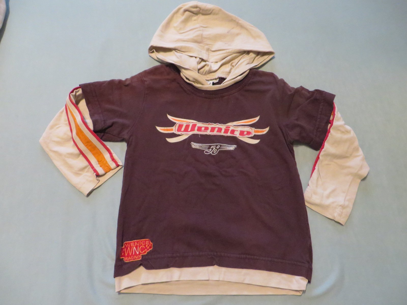 7/ hnedokávové tričko s kapucňou - veľ. 116 - značka WENICE - za zadu je tiež potlač - cena 2,20€