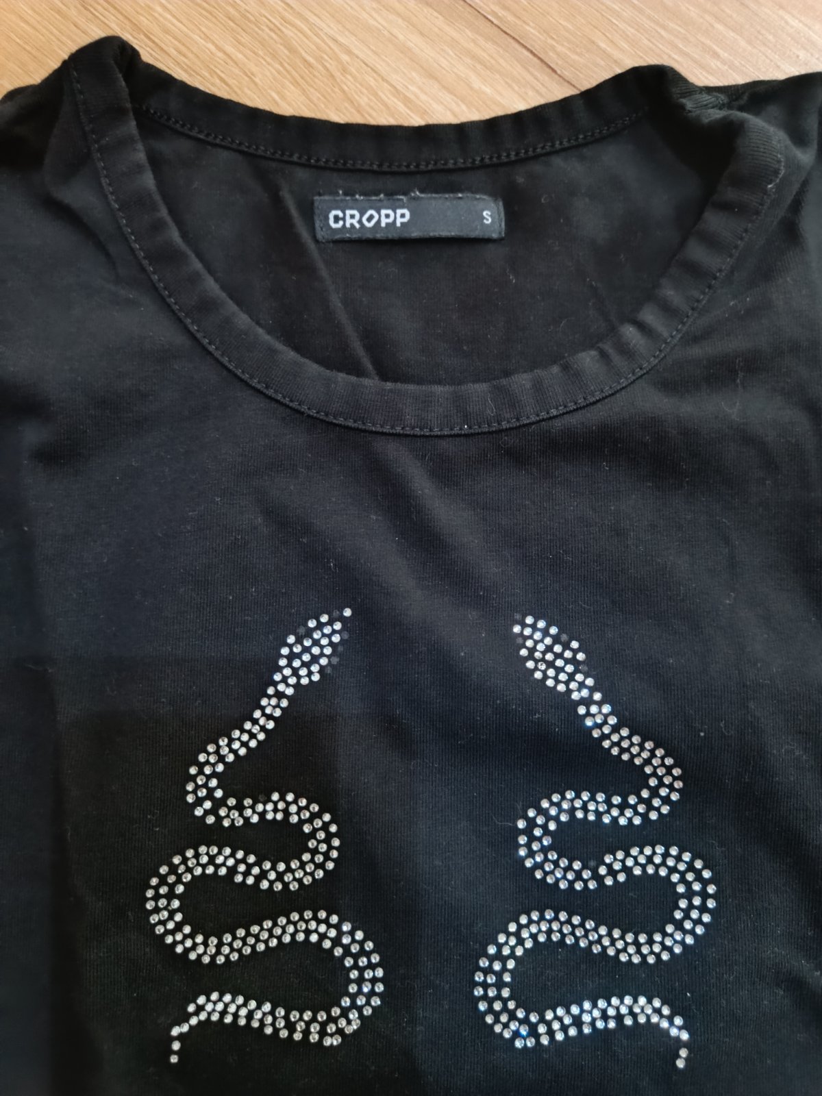 Predám čierne tričko s kamienkami značky Cropp, veľkosť S, celková dĺžka 47,5cm
