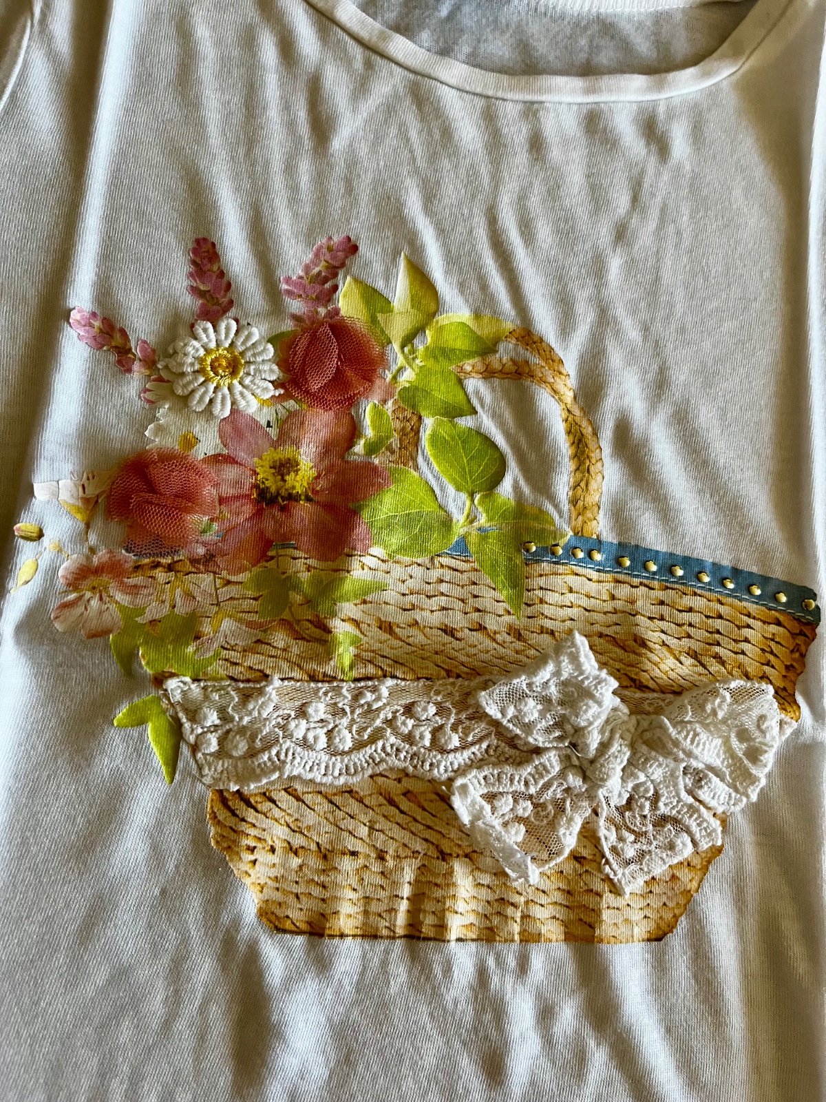 Tričko s košíkom s kvetmi a mašľou