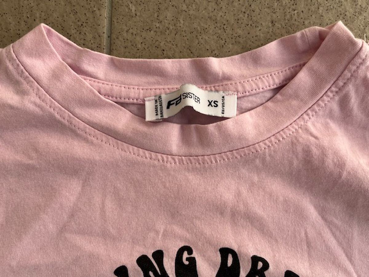 Letné tričko ružovej farby s motívom značky FB Sister (New Yorker), veľkosť je uvedená XS, materiál: 100% bavlna
