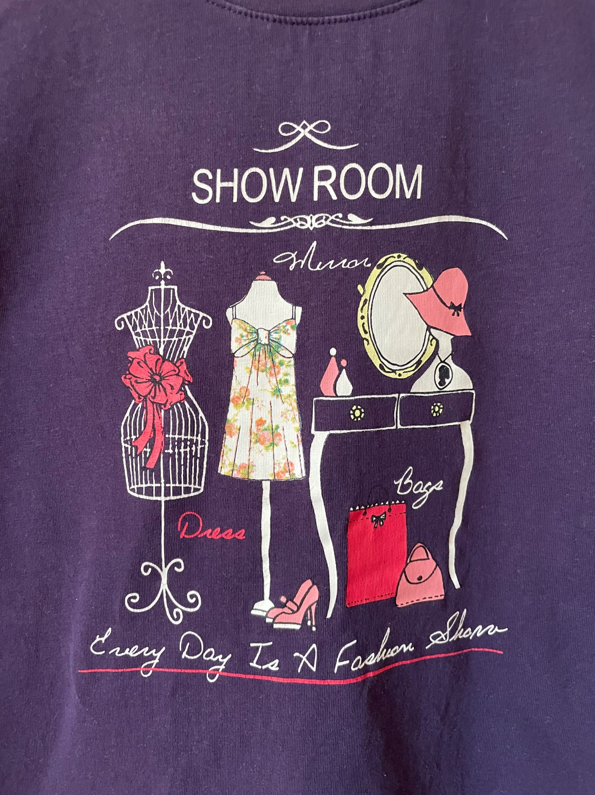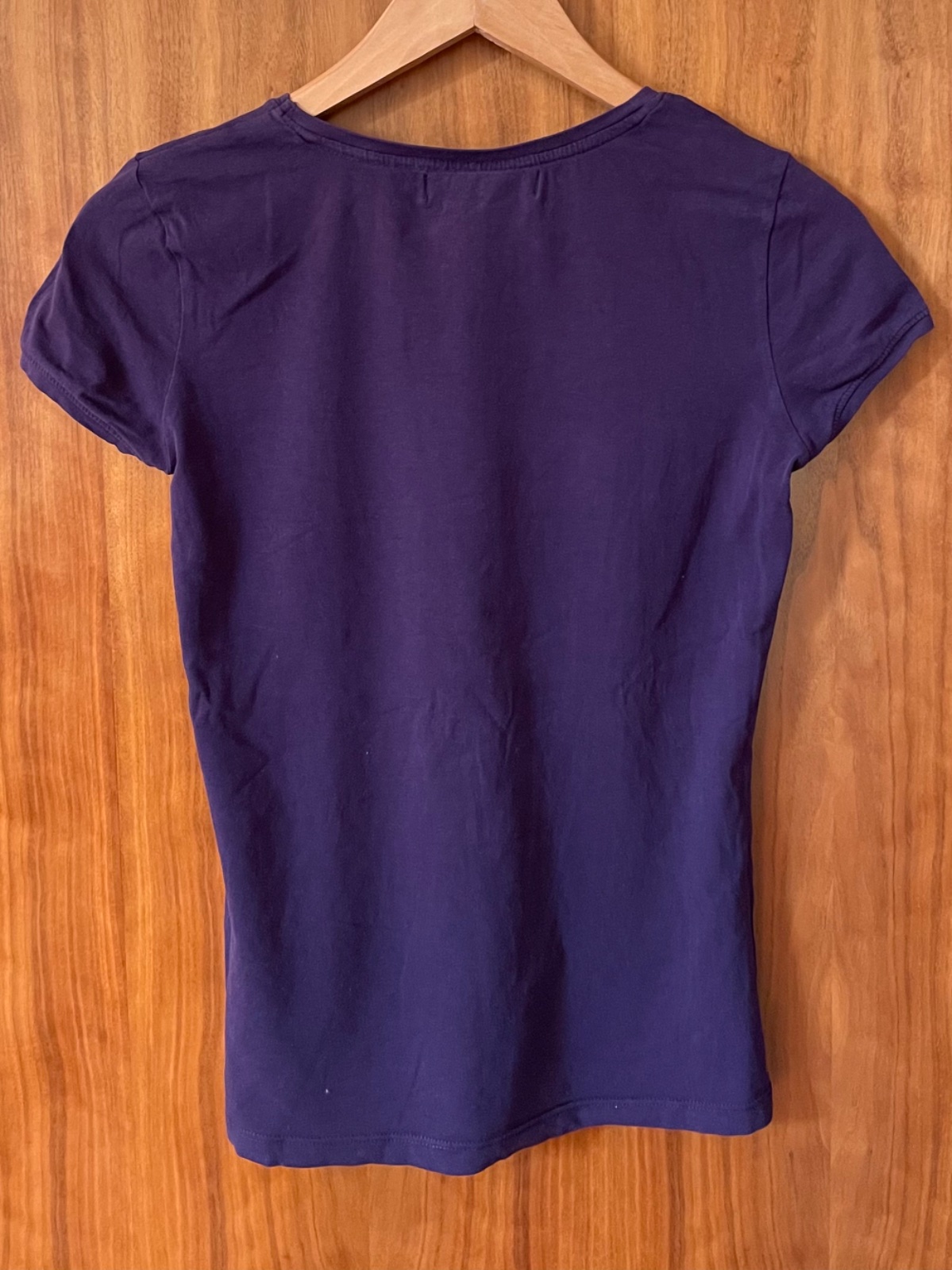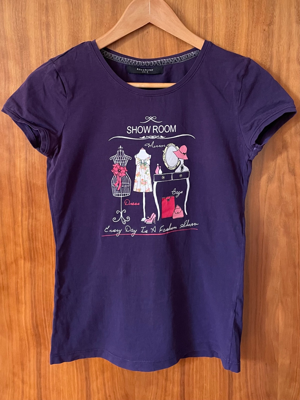 Predám zachovalé dámske tmavofialové tričko s potlačou v štýle shoe diva. Bez poškodenia.