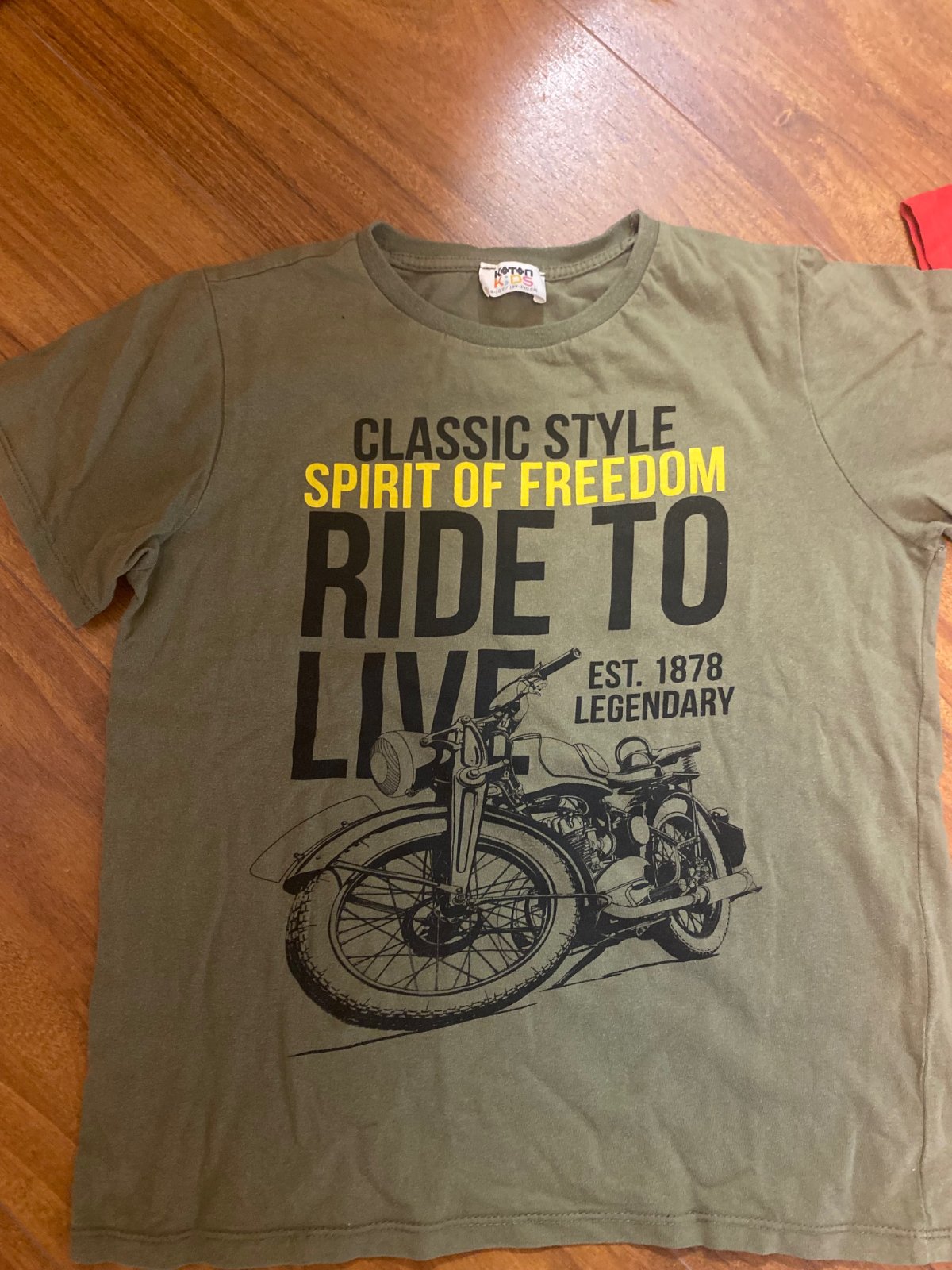 Koton Kids olivovo zelené tričko s krátkym rukávom, s motorkou veľ. 9-10 rokov, 134-140 cm