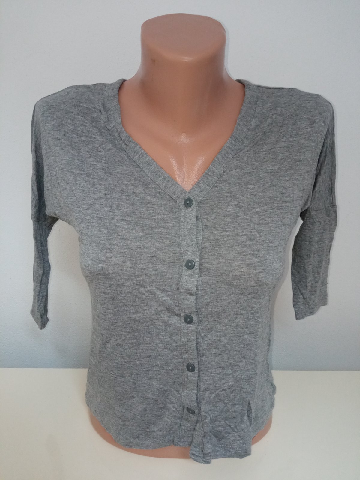 Dievčenské sivé tričko na gombíky, pre 8-10 r., tenké, elastické, materiál 100% viskóza.