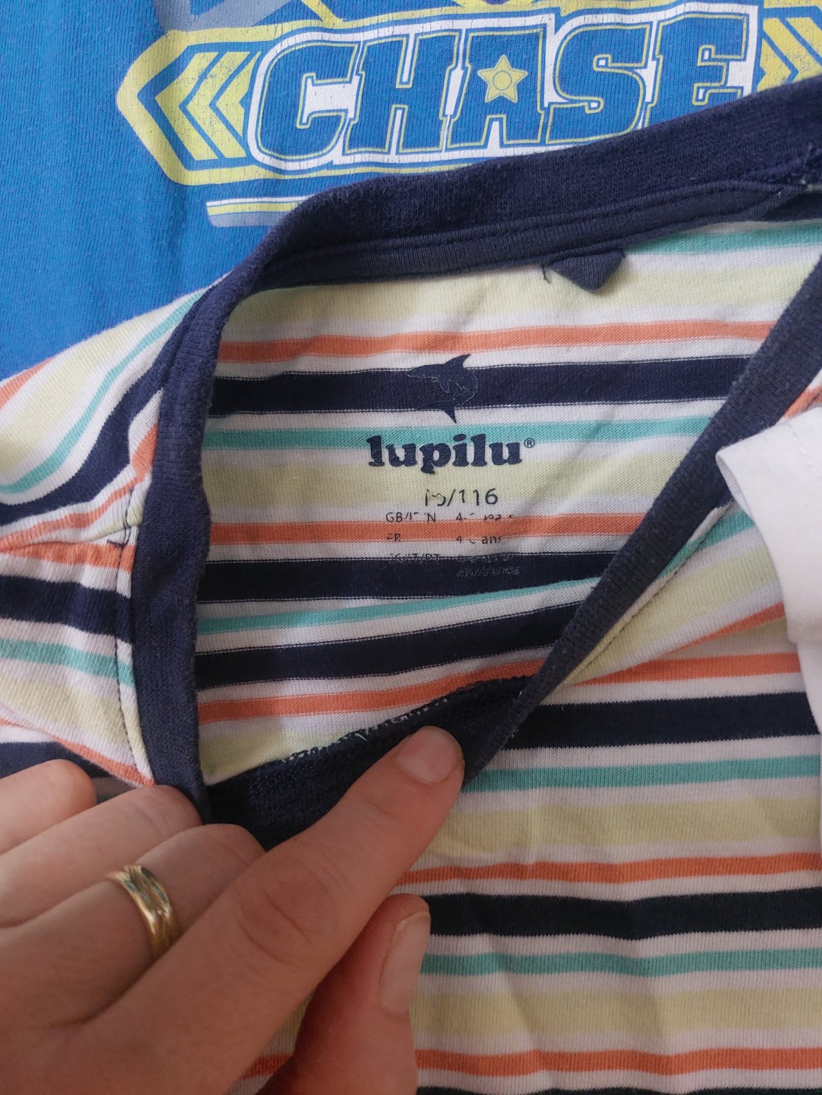 Je v noxh maly dlzjocy rozdiel,vidjo na ooslednej foto,autickove ma 42cm,biele pasikove 47xm,ale vsetky boli nosene súbežne. Mam v inzeratoch este vela tričiek v tejto veľkosti,pozrite aj tam.. Chase ma uz vyoraty faebu,používali.sme na spanie..