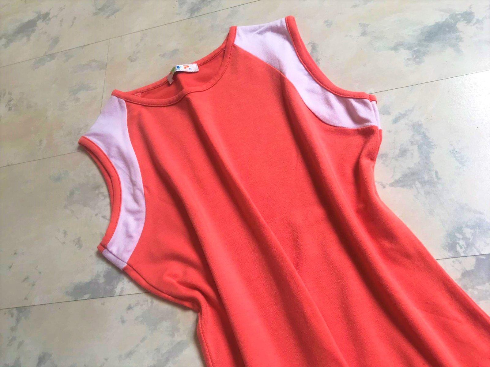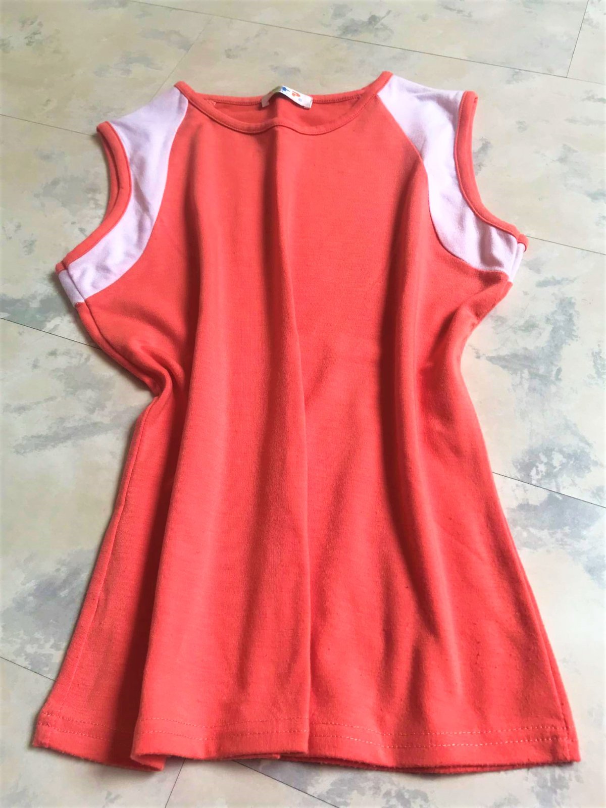 jednoduché ,ale zaujímavo riešené kvalitné tričko ,skôr marhuľová farba,v 100 % stave - je nové,iba preprané po skladovaní,obvod pod pazuchou = 42 x 2 cm,poddá sa do 45 x 2,dlžka od pazuchy = 37 cm,celková dlžka = 55 cm, je jemne vykrojené a vytvarované do princesu,nie úplne rovné