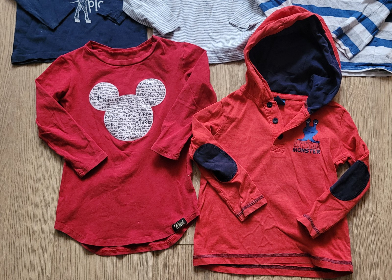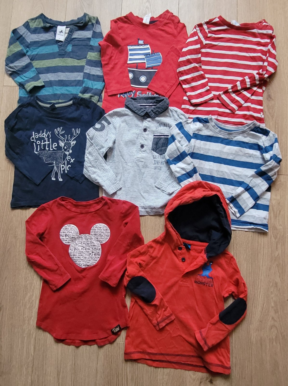 Chlapčenské tričká, deväť kusov, mix značiek a veľkosti, veľkosti od 86 po 98,