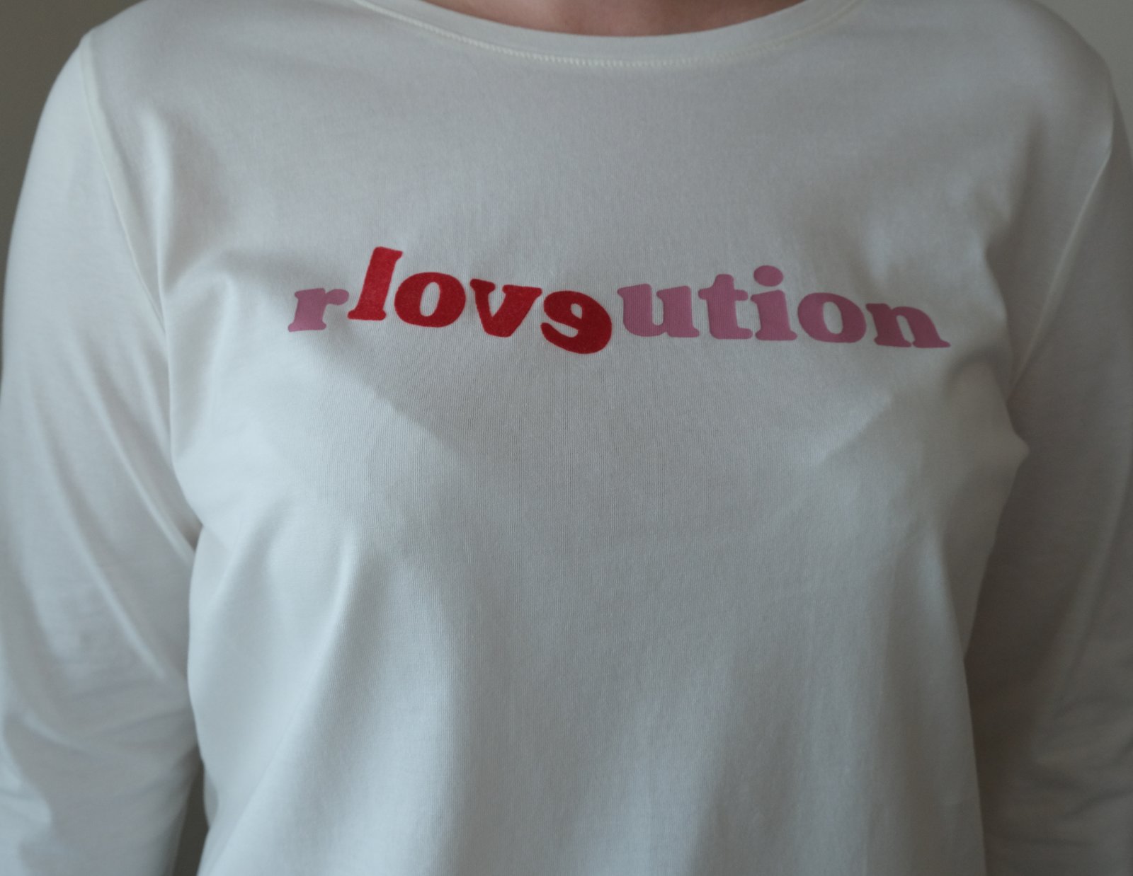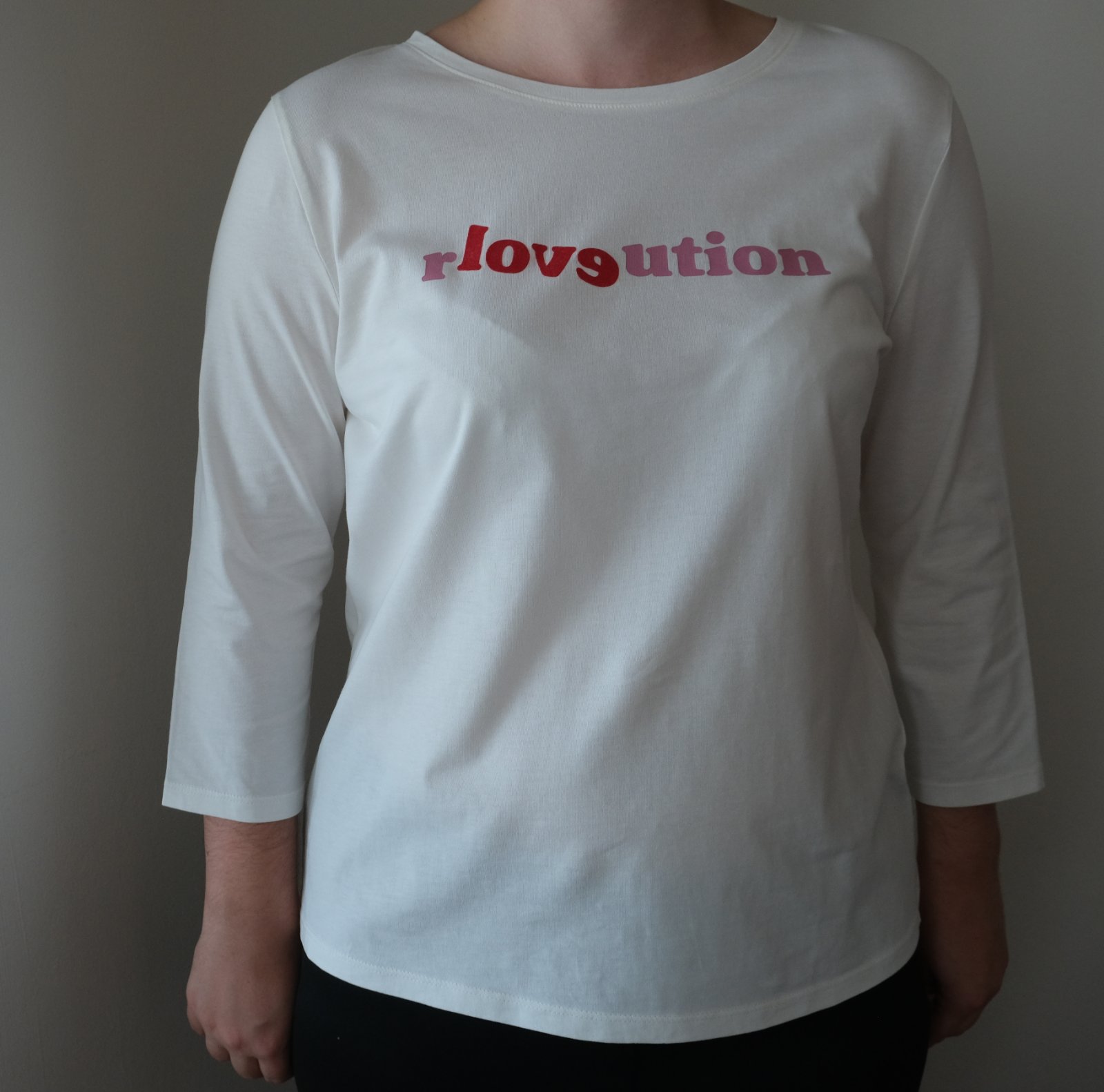 🛒 Krémové tričko s okrúhlym výstrihom, nápisom rloveution a 3/4 rukávmi - XL